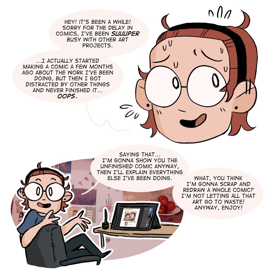 P.S. I'm still trying to make comics when I can but I've been doing a bunch of other things, I don't know how regular these are gonna be but I'll do my best to upload more often!