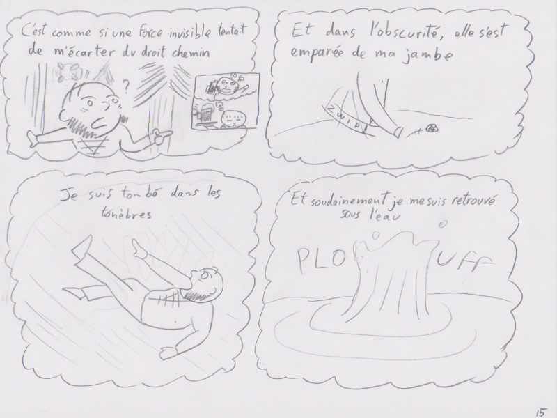 A 23-page comic made in 23 hours for the "23h de la BD". It is in French and very quickly drawn to fit the timeline. The theme of the challenge was "Winged creature" and there was a constraint "a sequence must make no head or tails".