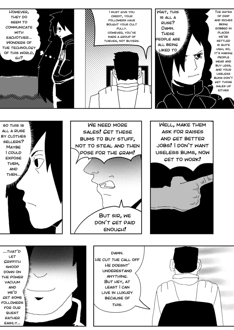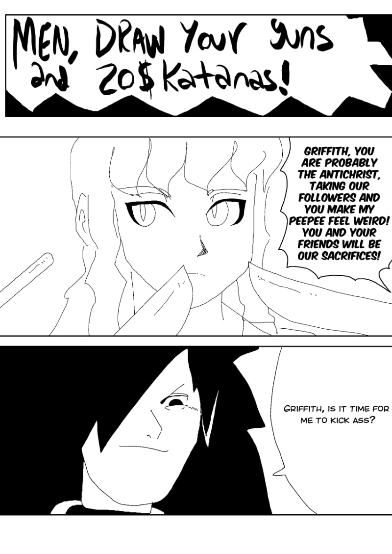 Madara and Griffith grapple for control while they travel with the homeless towards their church for a festival. Who will come out on top? Will they ever accept their differences or will they stray away from eachother?