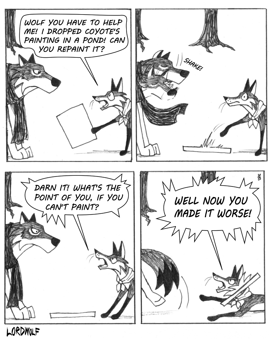 A mischievous fox, a friendly coyote and a silent wolf have many adventures around their cabin home in the woods. Updates on Saturdays.