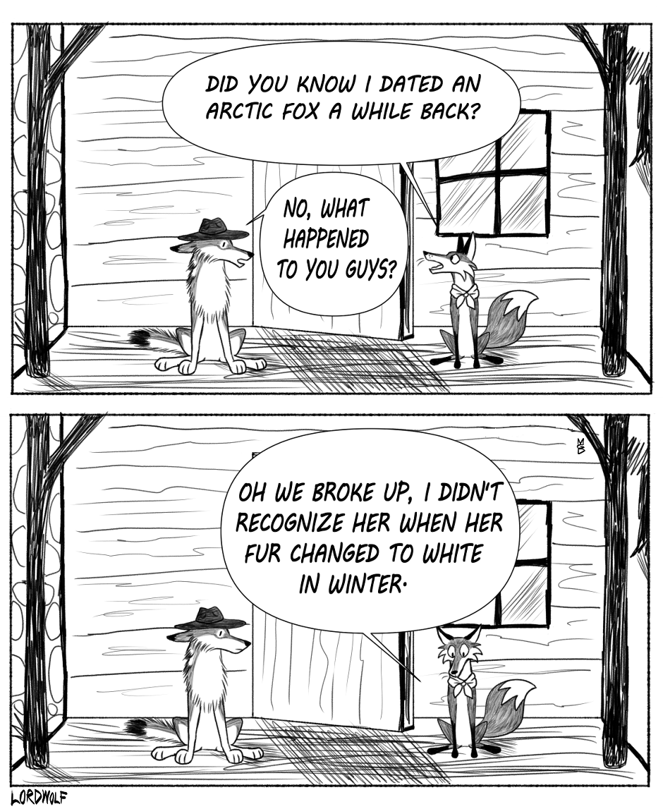 A mischievous fox, a friendly coyote and a silent wolf have many adventures around their cabin home in the woods. Updates on Saturdays.