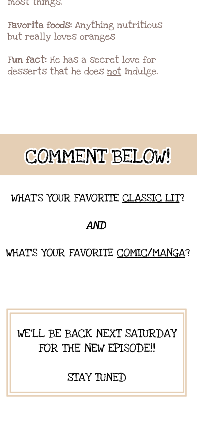 And as for my favorite comic/manga, I honestly don't have one 😭 I have way more than one favorite comic/manga, but if I had to choose I would say that Cheating Men Must Die, Villain to Kill, Bibliophile Princess, To Your Eternity, Return of the Blossoming Blade, Zom100, So I'm A Spider So What?!, Get Schooled, Aza, Don't Click!, Clinic of Horrors and probably the only comic that I could say is my favorite of favorites... Mritunjoy's Tragicomedy. I simply love this comic the art is so beautiful!