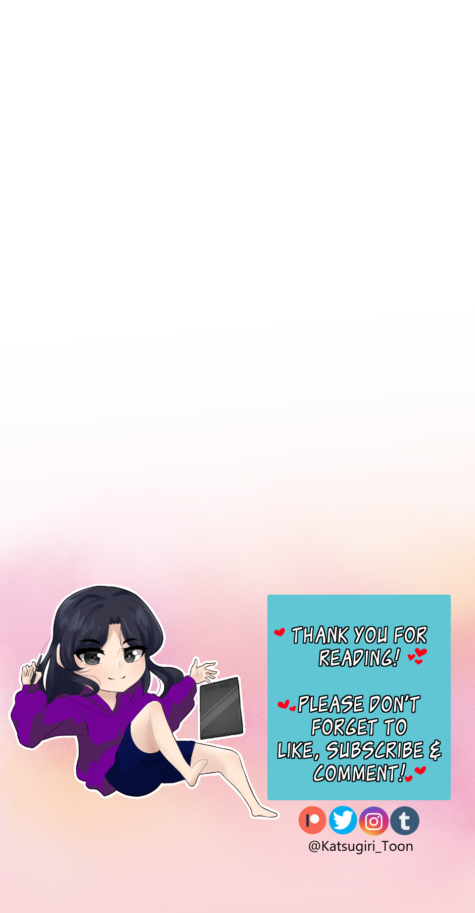 Starting now, upcoming updates will be 10+ panels. This is so I can draw/update my webtoon whenever I have a break from doing commissions.\(^o^)/