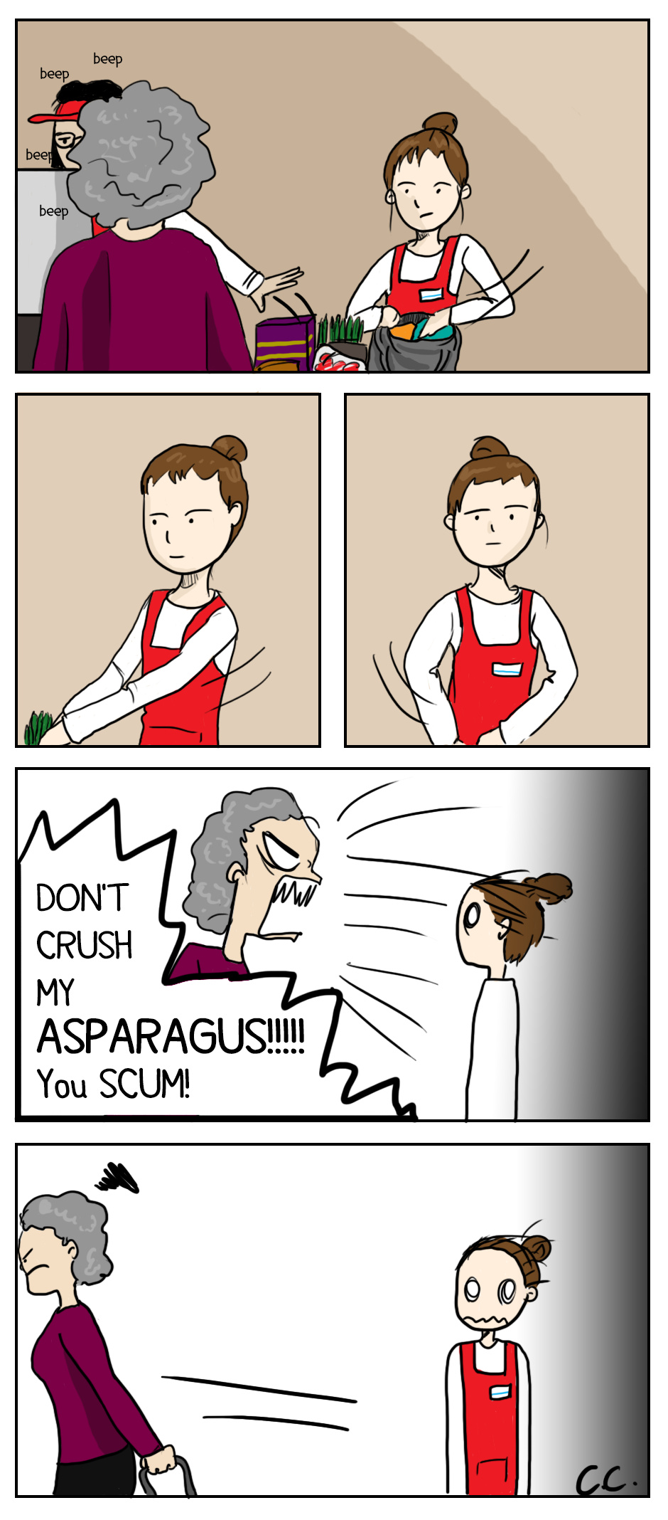 Ugh...used to be a cashier at an upscale grocery store. Don't get me STARTED on how obsessed people are with how you bag their groceries!