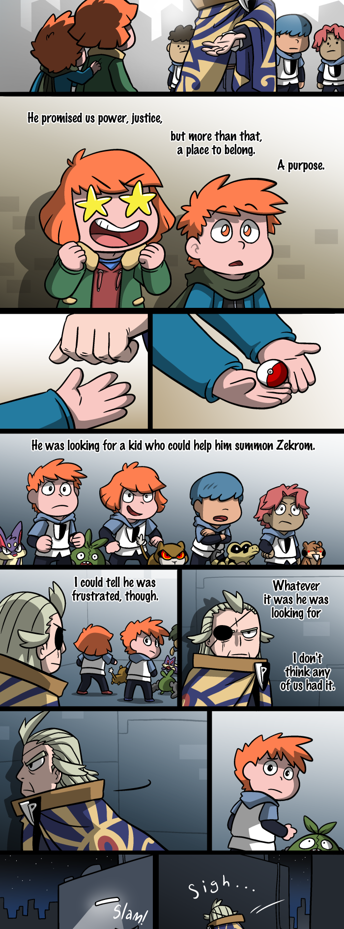 This is a Pokemon Black Nuzlocke comic, and follows my depiction of the game's story events. Take another trip through the land of Unova with a new cast of characters and a lot more laughs, tears, and Patrats than you ever thought you needed! Pokemon belongs to Game Freak and Nintendo, and this comic is on going. You can read the whole thing on my website JetsBlackNuzlocke.com