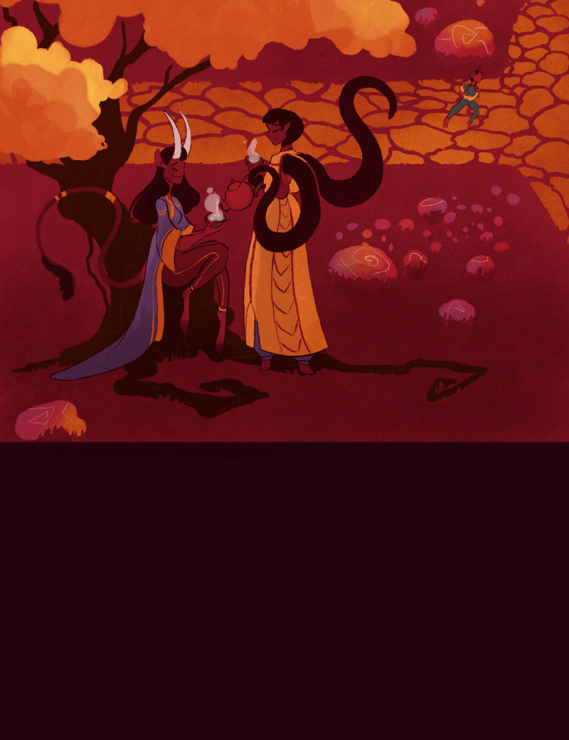In a mysterious underground amber-colored temple, the young demon Swart lives in an idyll, helping other elementals along with the sisters and the abbess. But if you look closely, you might notice that something isn't quite right about their magical valley. Something sinister lurks in the shadows of the ancient trees. It came from the North, and brought only fear, pain and the eternal struggles for survival for those who stand in its way. And this "something" is hungry.