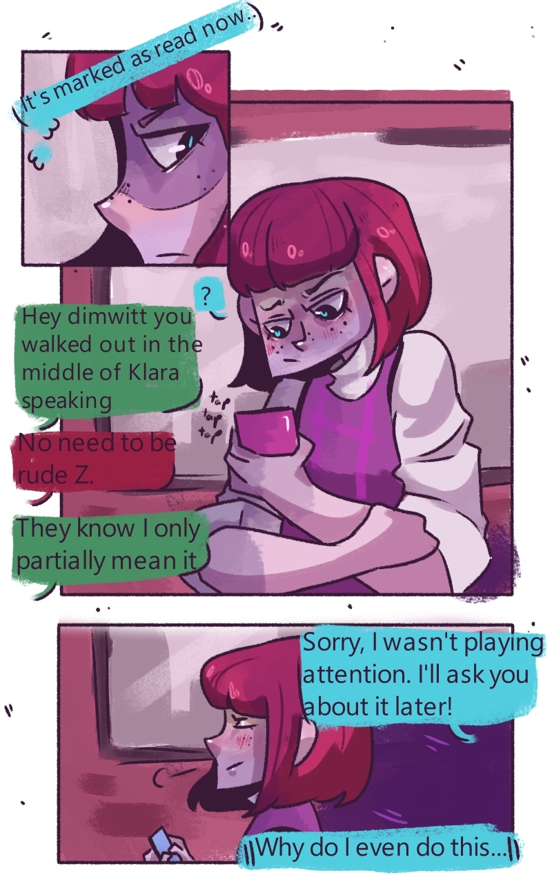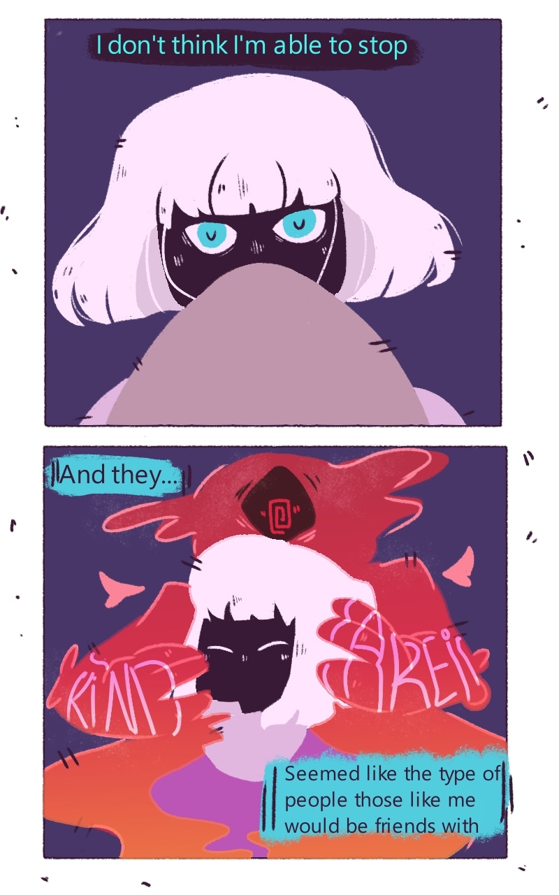 Everyone wants to fit in right? In the end it's just easier to go with the crowd rather then against it. Something that Clo lives by. His personality can be whatever the people around him want him to be and he likes it like that. It's just more coinvent rather then having to deal with the dislike around having a disagreeable personality. That is in till... he meets his conscious.