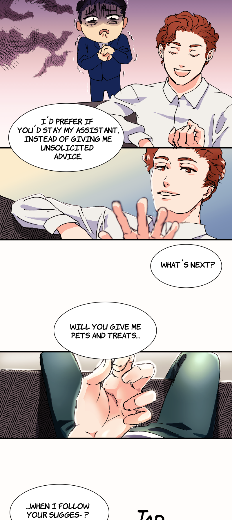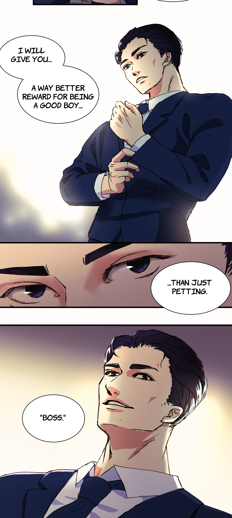 Nathan is an entitled boss, Henry his submissive assistant. As one day Nathan's teasing goes over board, he is put in his place ... And likes it. A game of power reversal ensues, that turns their pecking order around. Updates every week ;) BL/ Boys Love + light BDSM