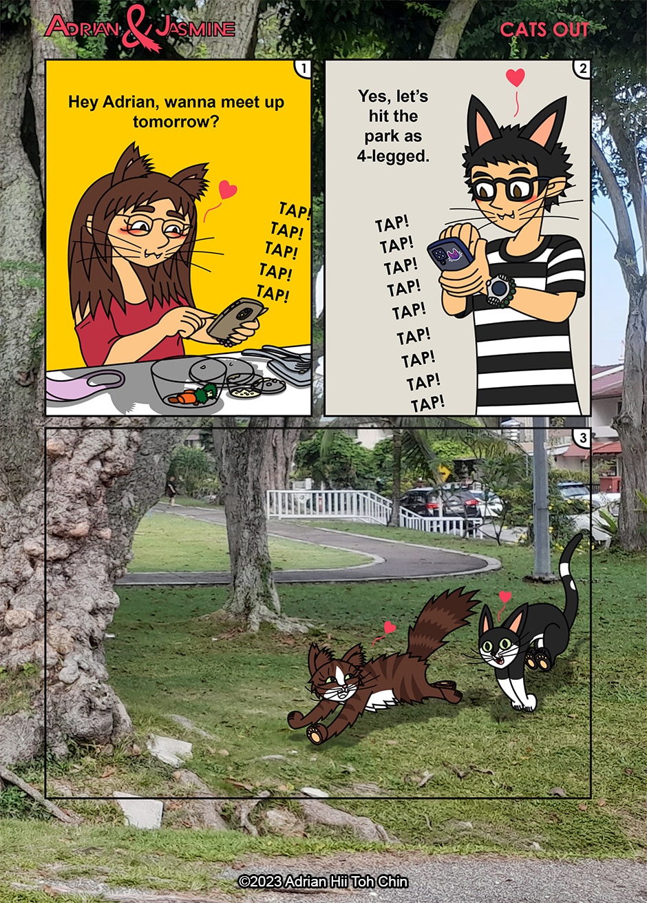 A Simcats' Spinoff, it's the creator himself entering his new era as a boyfriend for the first time dating somebody. Long long wait for the past thirty three years to finally have a girlfriend for the first time. The notable difference is it's Adrian's first but Jasmine's eighth because she has seven exes who are mostly misogynistic pieces of craps. Whether it's based on true events or atopos (made up conceptual experiences), the author has started his first rom-com comic strip only about him and Jasmine.