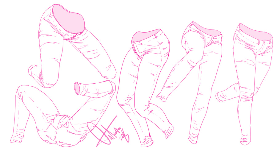 I have a really hard time with jeans, so here is a work sheet I did studying jeans at different angles and poses to help get used to the folds and wrinkles of the material. I hope this can help anyone having the same troubles I am. When I get better I'll make a proper tutorial. :)