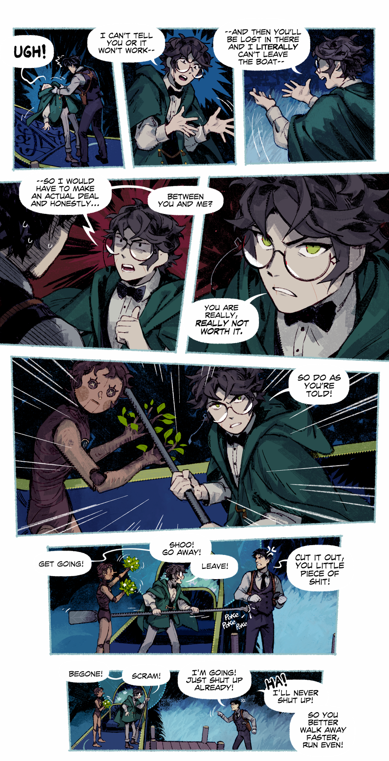 HAYDEN’S NOTES is a magic realism mystery with horror elements, set in the fictional country in the first half of the 20th century. The comic’s told in the non-chronological order revolving around Hayden Carter, immortal (by accident) gray mage, pursuer of knowledge and a witty nuisance for everyone around.