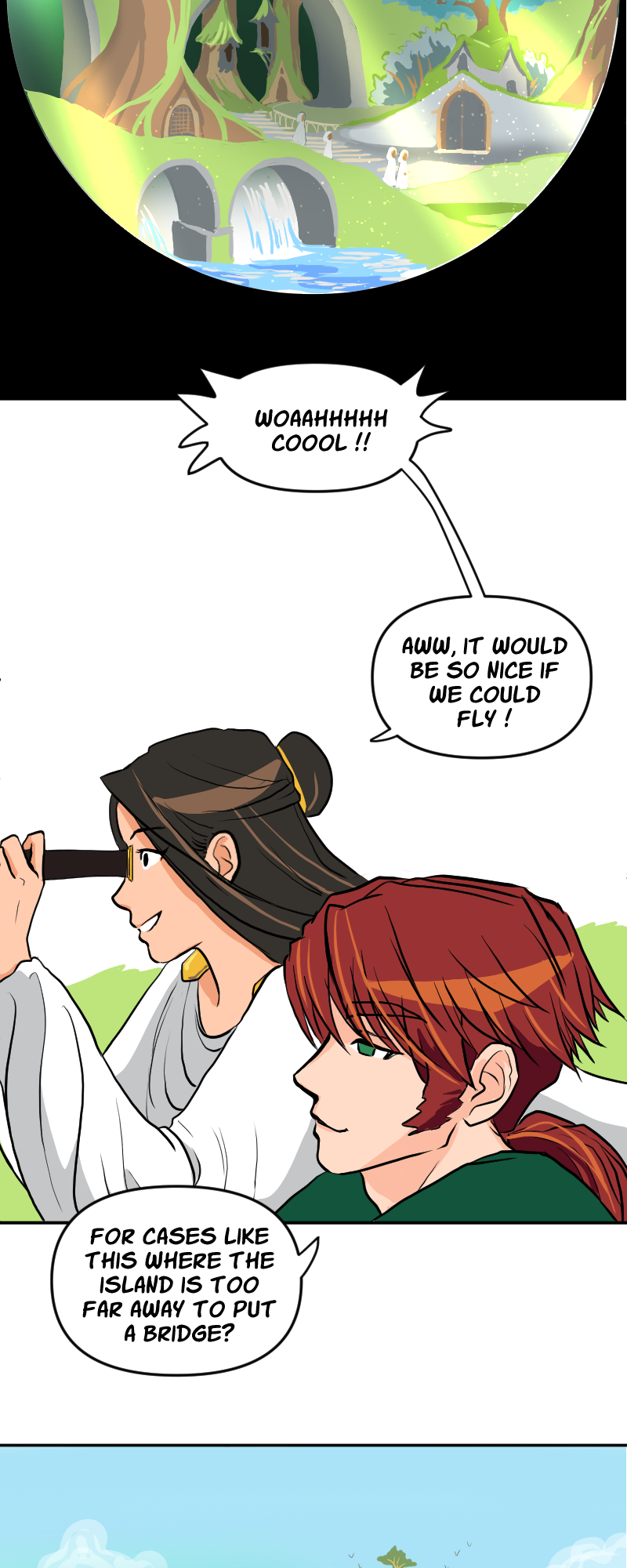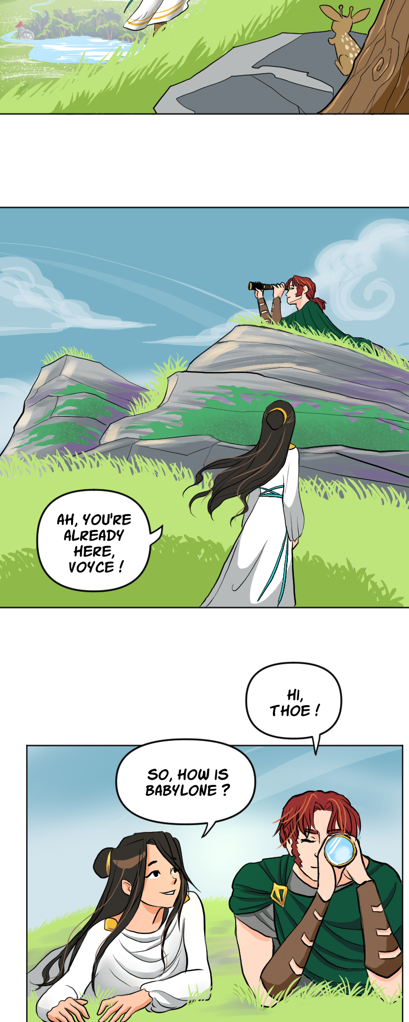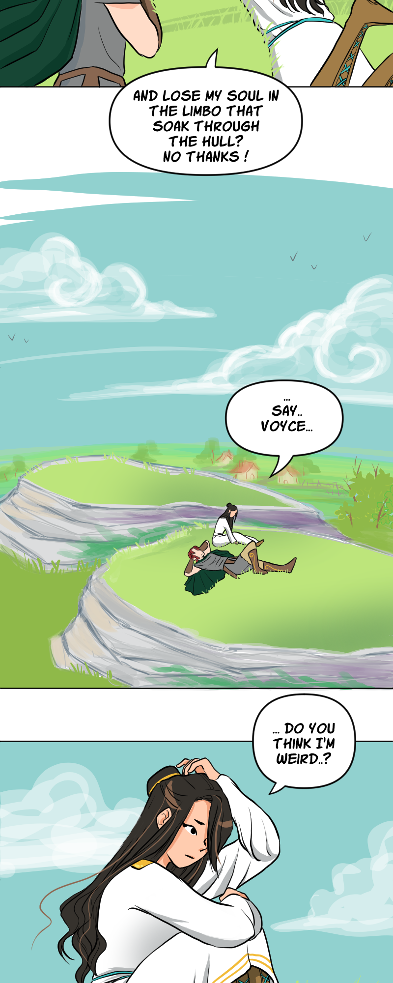 Nawwwww I love Thoe! She has dreams and is creative, that makes her really cute! Also, the moment with her and Voyce made me stop breathing for a second 😂 but of course something would ruin the moment :( Oh and I love the landscapes you draw 😍 I would never have the patience and creativity for such masterpiece panels!