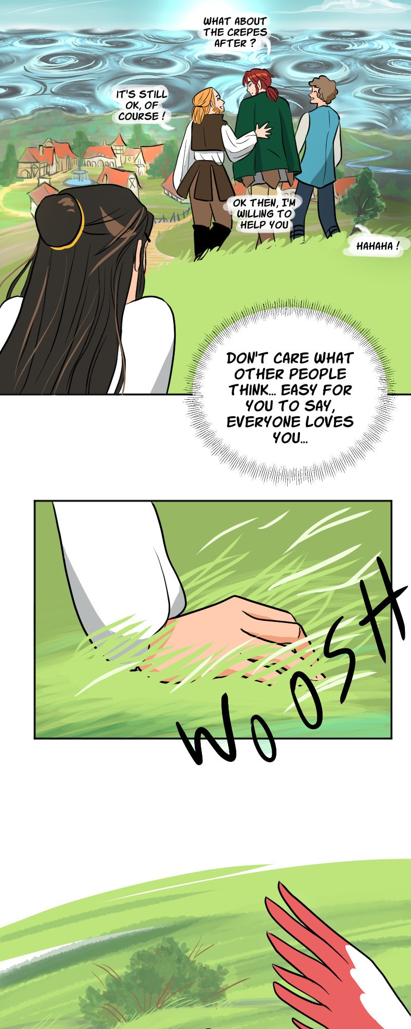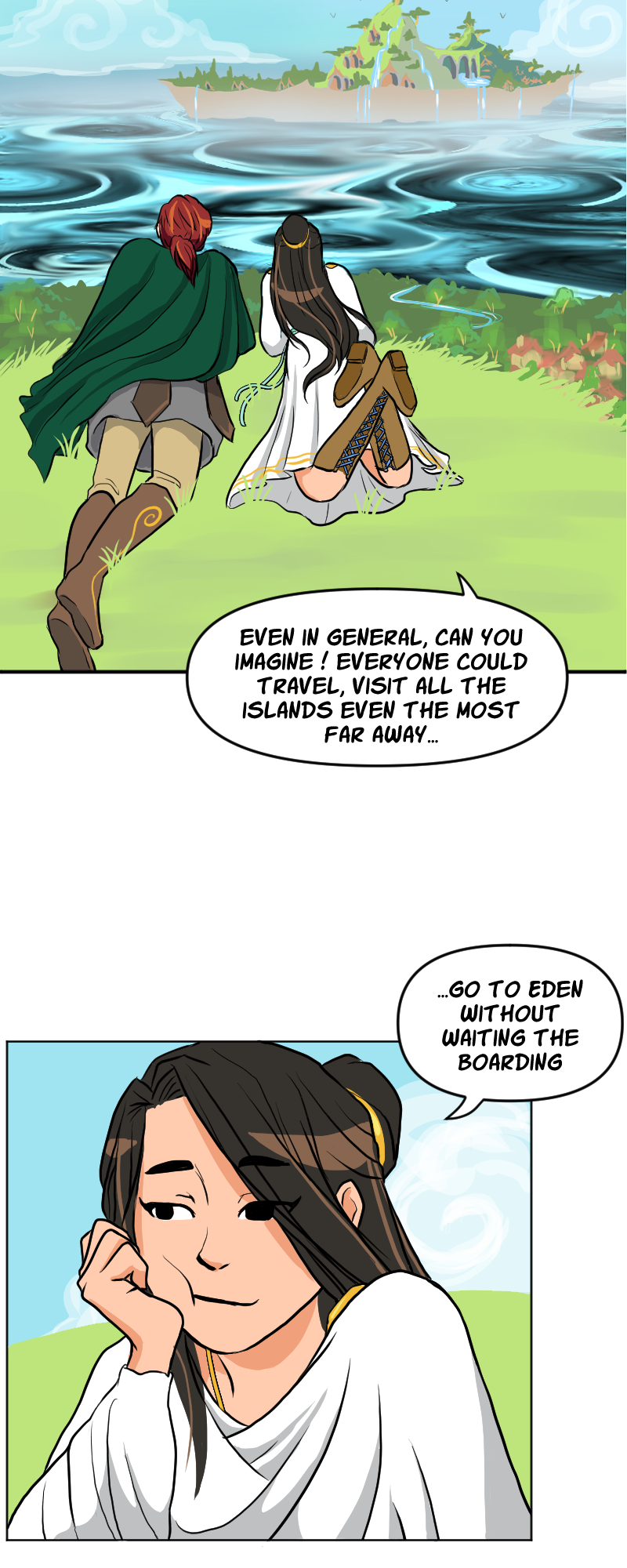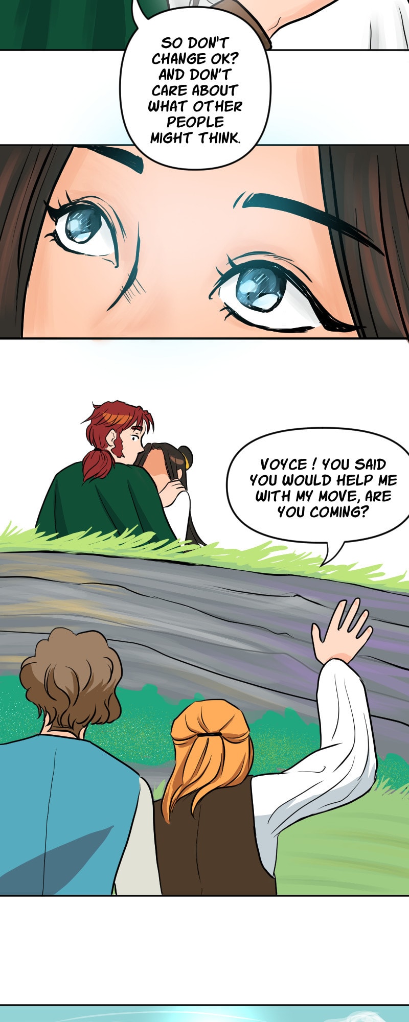 Nawwwww I love Thoe! She has dreams and is creative, that makes her really cute! Also, the moment with her and Voyce made me stop breathing for a second 😂 but of course something would ruin the moment :( Oh and I love the landscapes you draw 😍 I would never have the patience and creativity for such masterpiece panels!