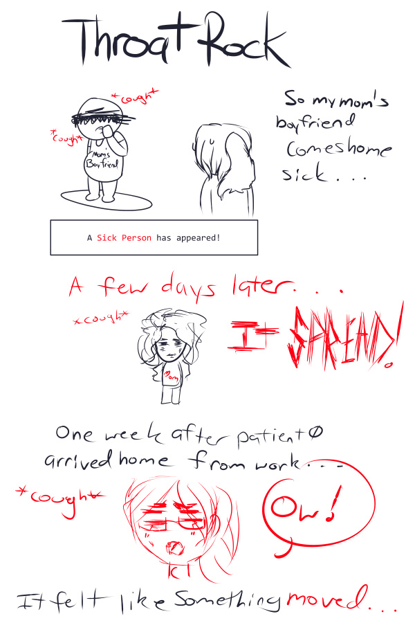 Yes it felt like I had a rock in my throat- it was weird and painful. Now my throat is swollen- ah life. My Mom and I told her boyfriend to lock himself in his office and to get a cot if he ever gets sick again.