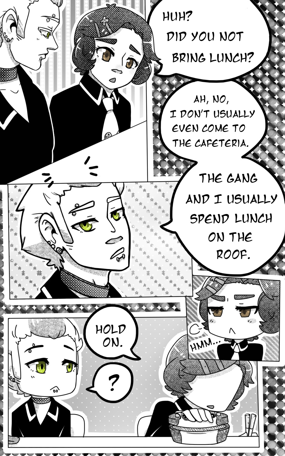I went really texture-happy on this page.. ^^; I'm not exactly happy with it, but I figure it's better than the white space it had before. Also, sorry for the tardiness! Been a crazy week.