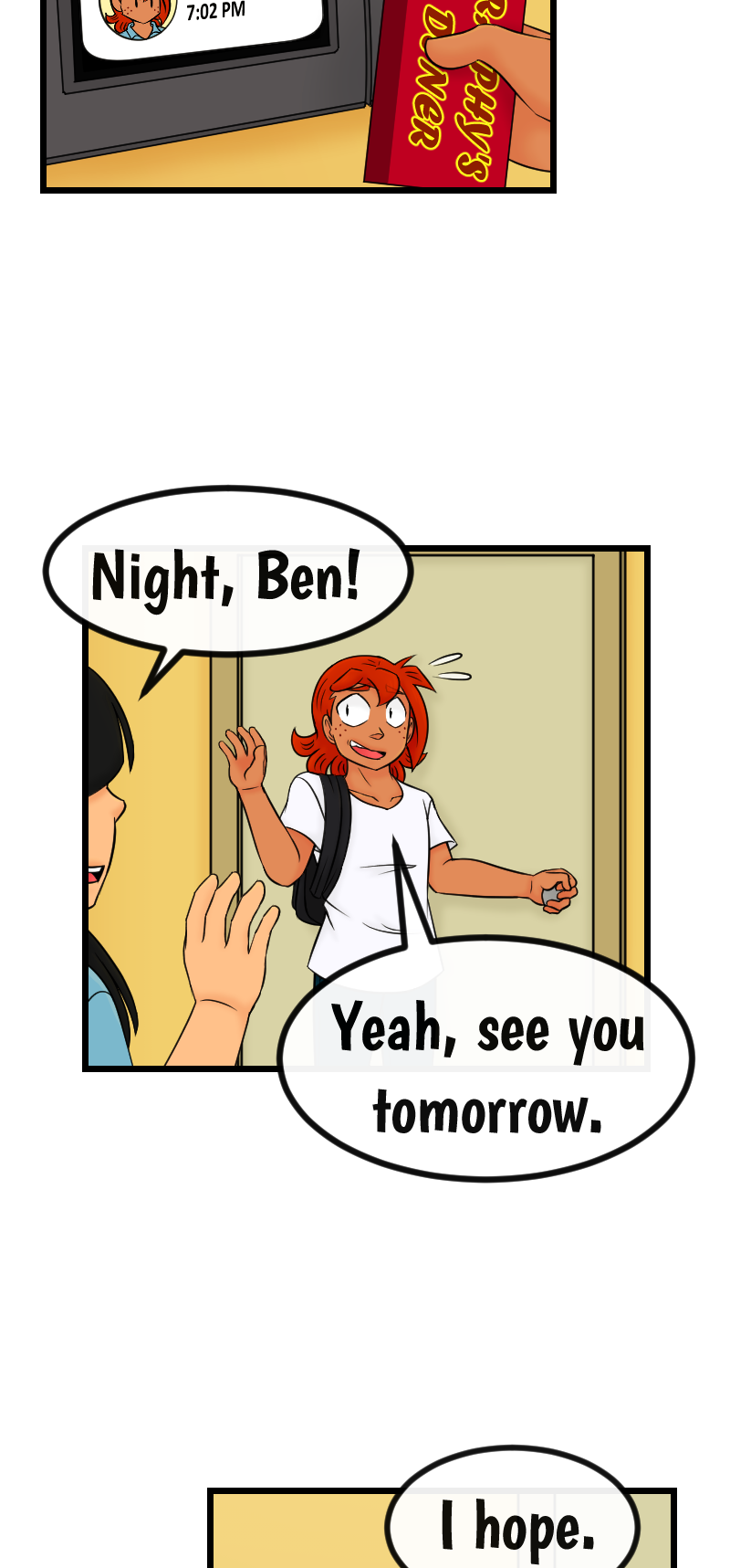 I love the detail of God's presence dissolving the panel boarders. I thought something was up with the first few shots...we hadn't gotten any panels with Him not present yet. Nice!