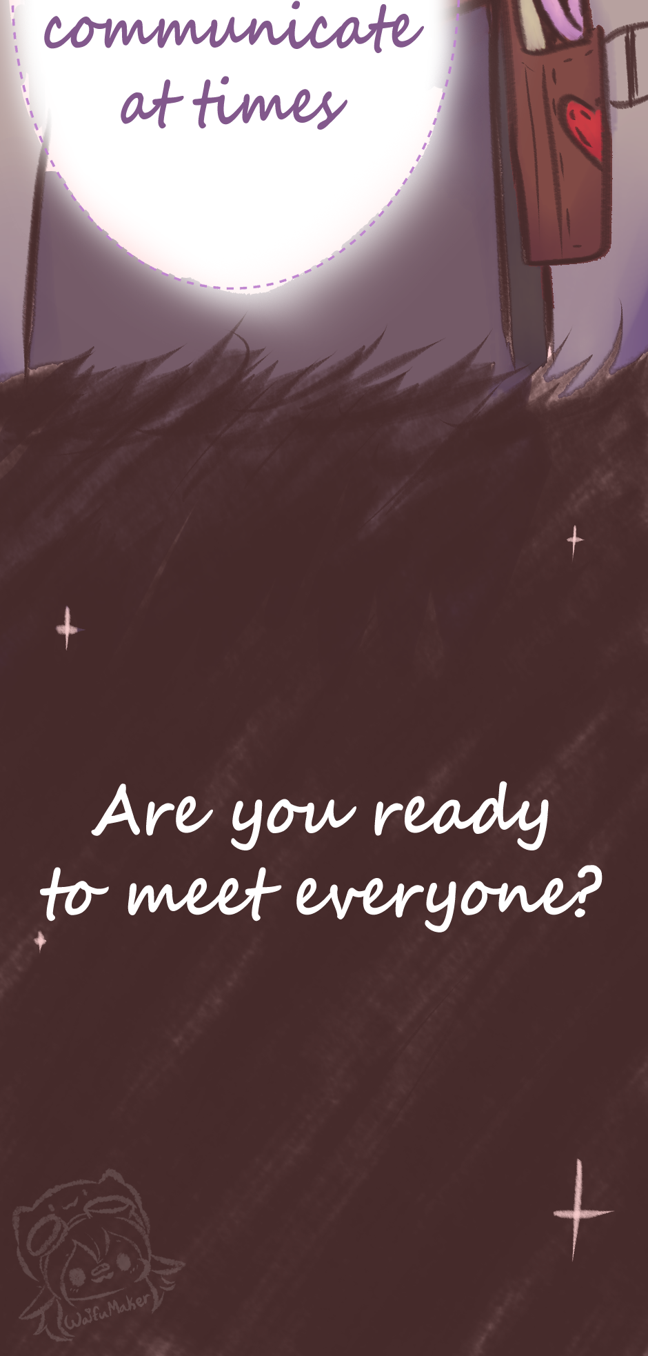 WaifuMaker here! For any confusion, Michael can talk to you telepathically if you hold his hand! He can read your thoughts but you can also read his as well! So be careful of what your thinking ^w^)/