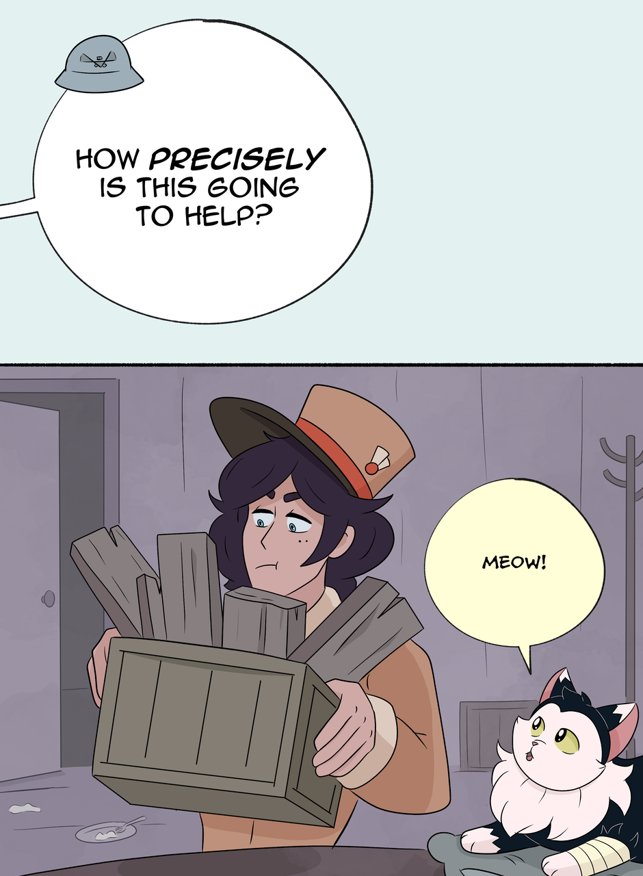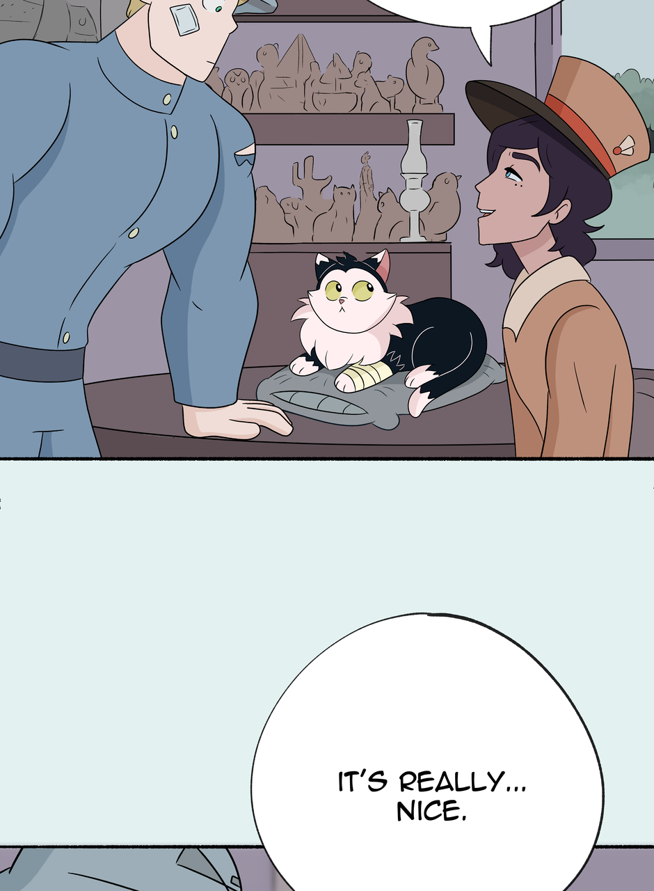 Fenn and Tobias are two soldiers stationed on opposite sides of an ancient border wall. Each taught to hate the other, all their notions of right and wrong, love and hate, war and peace are challenged when a freak lightning storm brings down the wall between them. Set against the backdrop of an all encompassing, Edwardian-esque world war, this MM comic explores love through the little, unexpected moments that add up to great change.