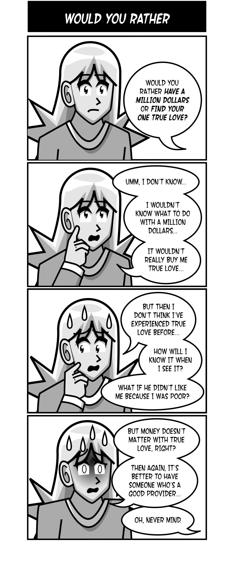 Follow Terry, Katrina, and an ever-growing group of outcasts and misfits as they go to school, put up with their idiot classmates and prepare for a life of pre-established gender roles, mind-numbing societal obligations, and soul-crushing reality.