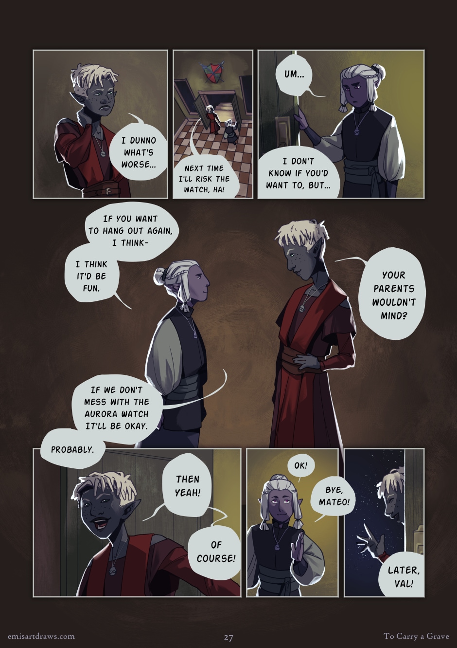 Despite how deliberately Luadiira tried to tear down Mateo's family name, despite how she attempted to put Val down, it's not enough to break a budding friendship. For the moment, dens and family names mean nothing.