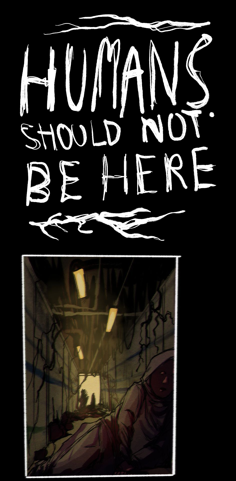 this is the short comic i made for my final major project inspired by the decay of british hospitals and the fact I grew up around both these hospitals and a house full of mould courtesy of our neighbour's landlord, I was in my shower wondering what to do for my fmp until I looked up and saw the mould covering my walls and celling and from then on "Humans Should Not Be Here" was made.