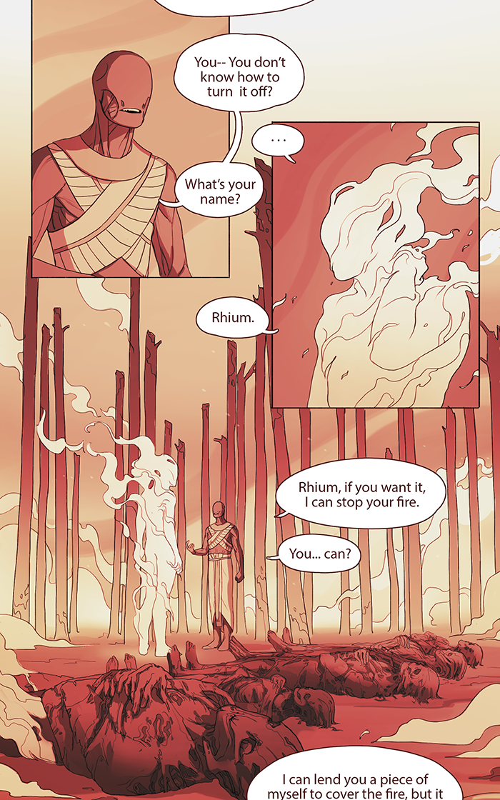 Oof gosh this is so sad. Seeing the corpses there, obviously Rhium was the one to carefully lay them down and cross their arms, for who else could stand the heat to do that?..