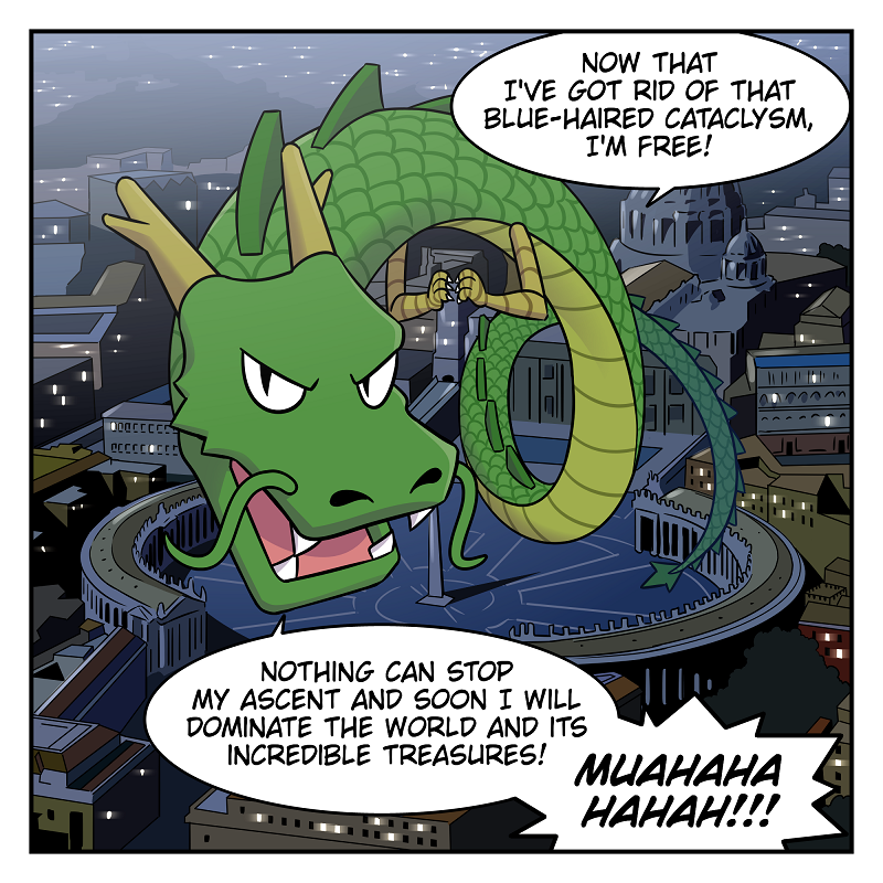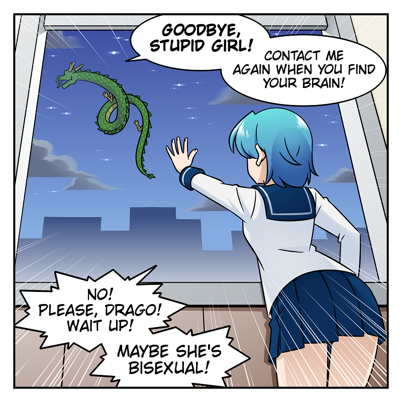Short comic strips of a silly girl and a useless dragon!
