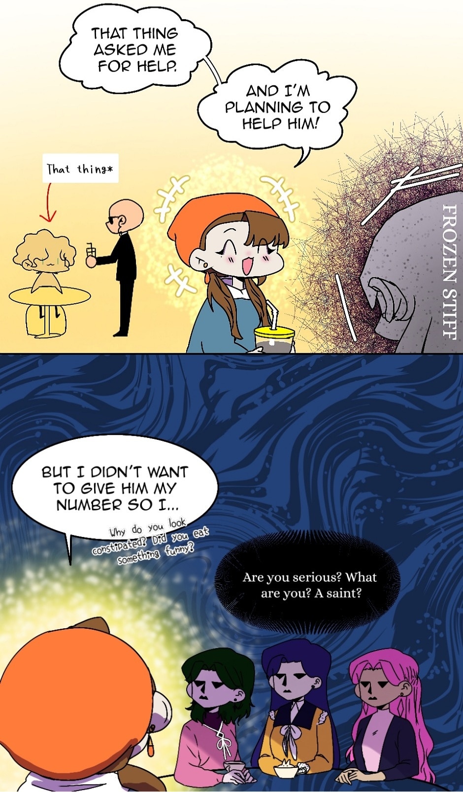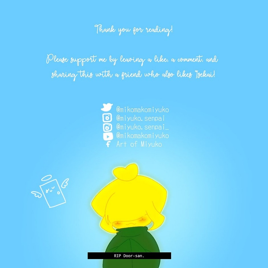 If you finished reading the whole thing, type RIP Door-san! I drew a jojofied meme... sort of. Do you like it? I'll make an official share thumbnail next time. I will also top 3 commenters on my next chapter! See you after 2 weeks!