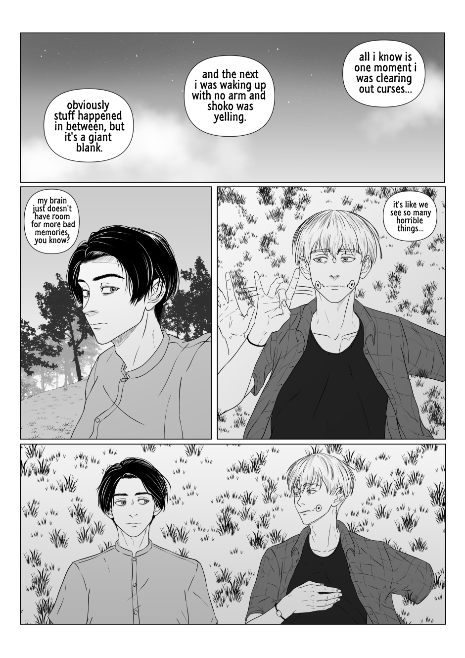 A canon-divergent fan comic focusing on Toge Inumaki post Shibuya/main story events.