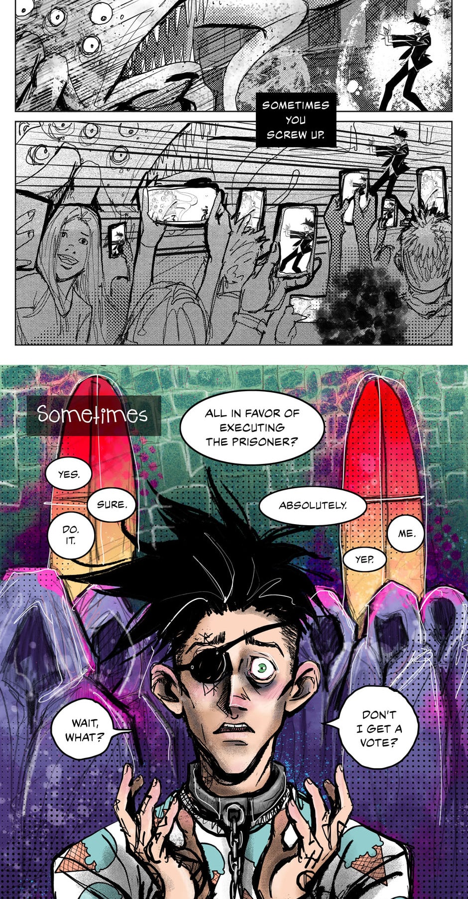 Part 1 of chapter 1 is finished! yay! I mean, it's only split into parts because I wrote this for print, and this is essentially the end of issue 1.