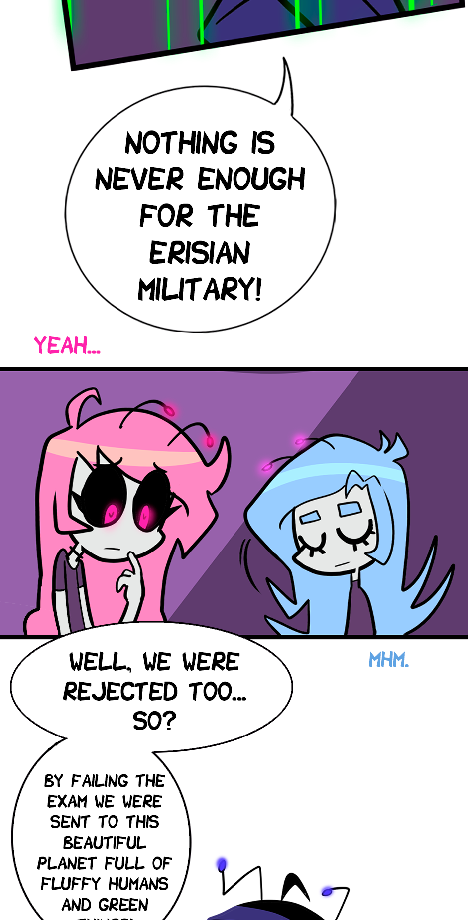 Aliens? Yes! Romance and comedy? Why not? They are among us, but nobody knows, not even the aliens themselves, from the distant planet Eris, do care. Cris, a college student with an interest in aliens as a hobby, and her neighbors, the explosive Sidney with her soft husband Celeste, witness the strange behaviors of the recently transferred sisters, supposedly named Nadia and Ursula. Why do they eat rocks and never go to the bathroom?! There are very strange people in this city.