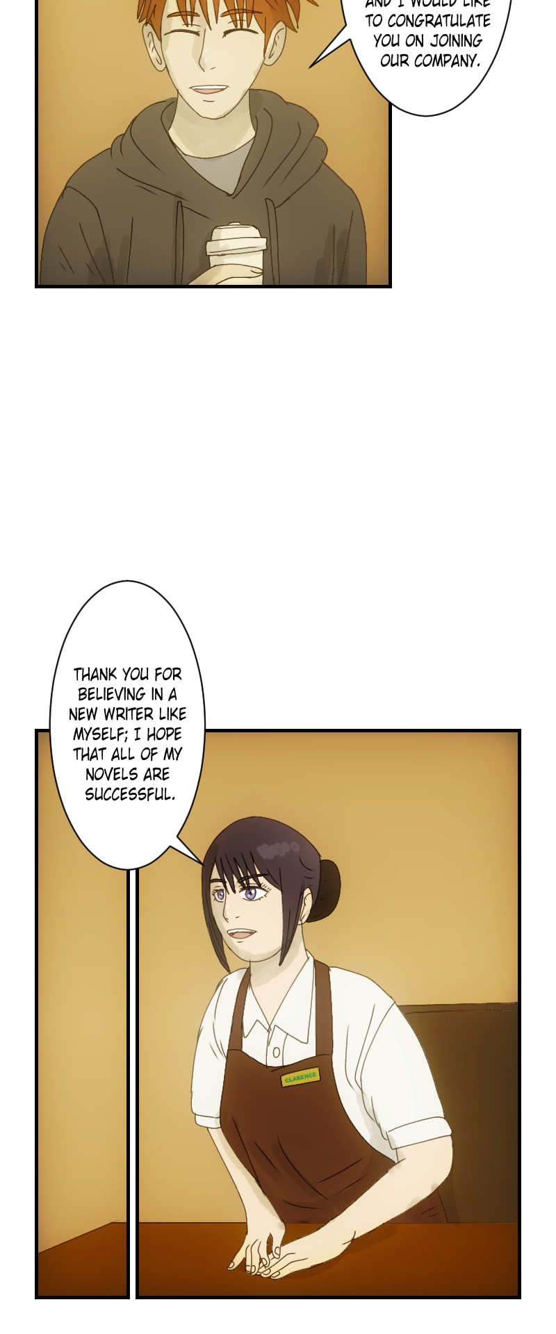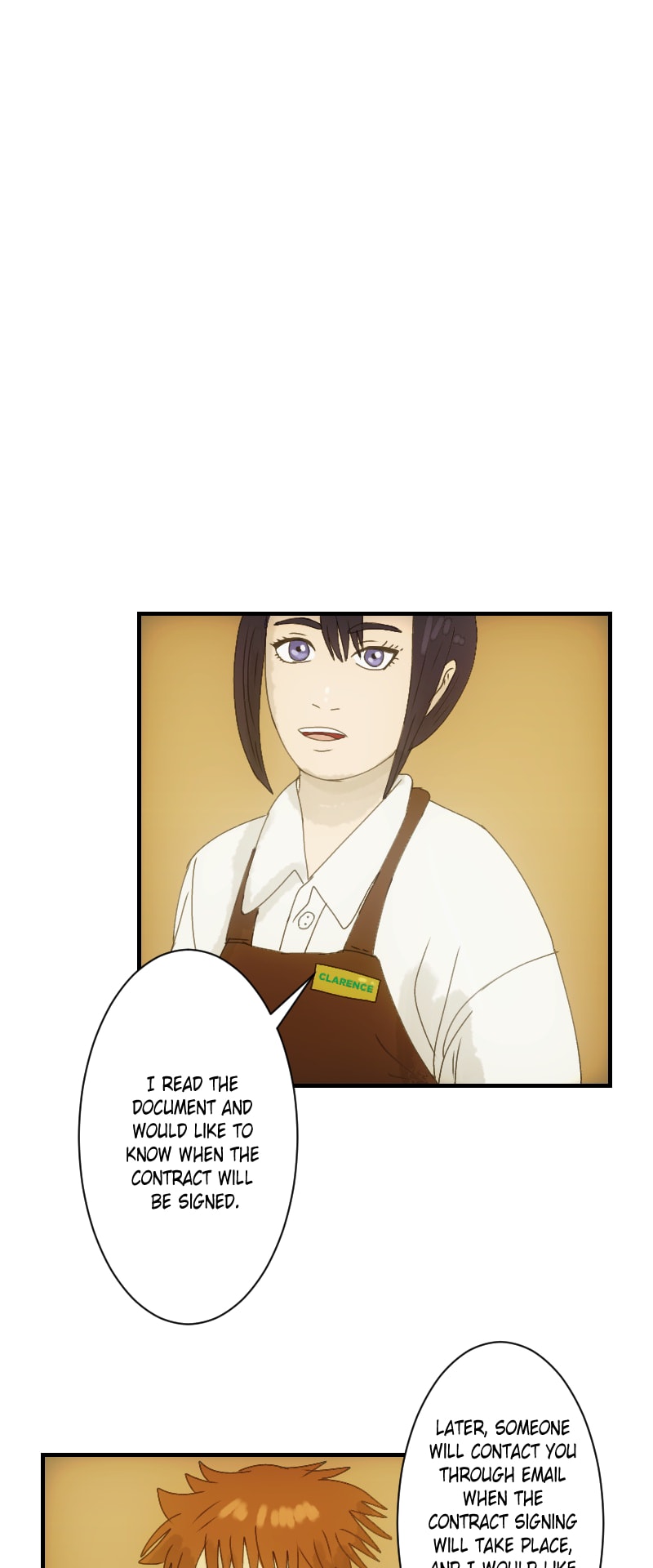 She will reincarnate as Clarence, a freelance webnovelist who aspires to work for a large publishing company that produces popular webcomics and webnovels.