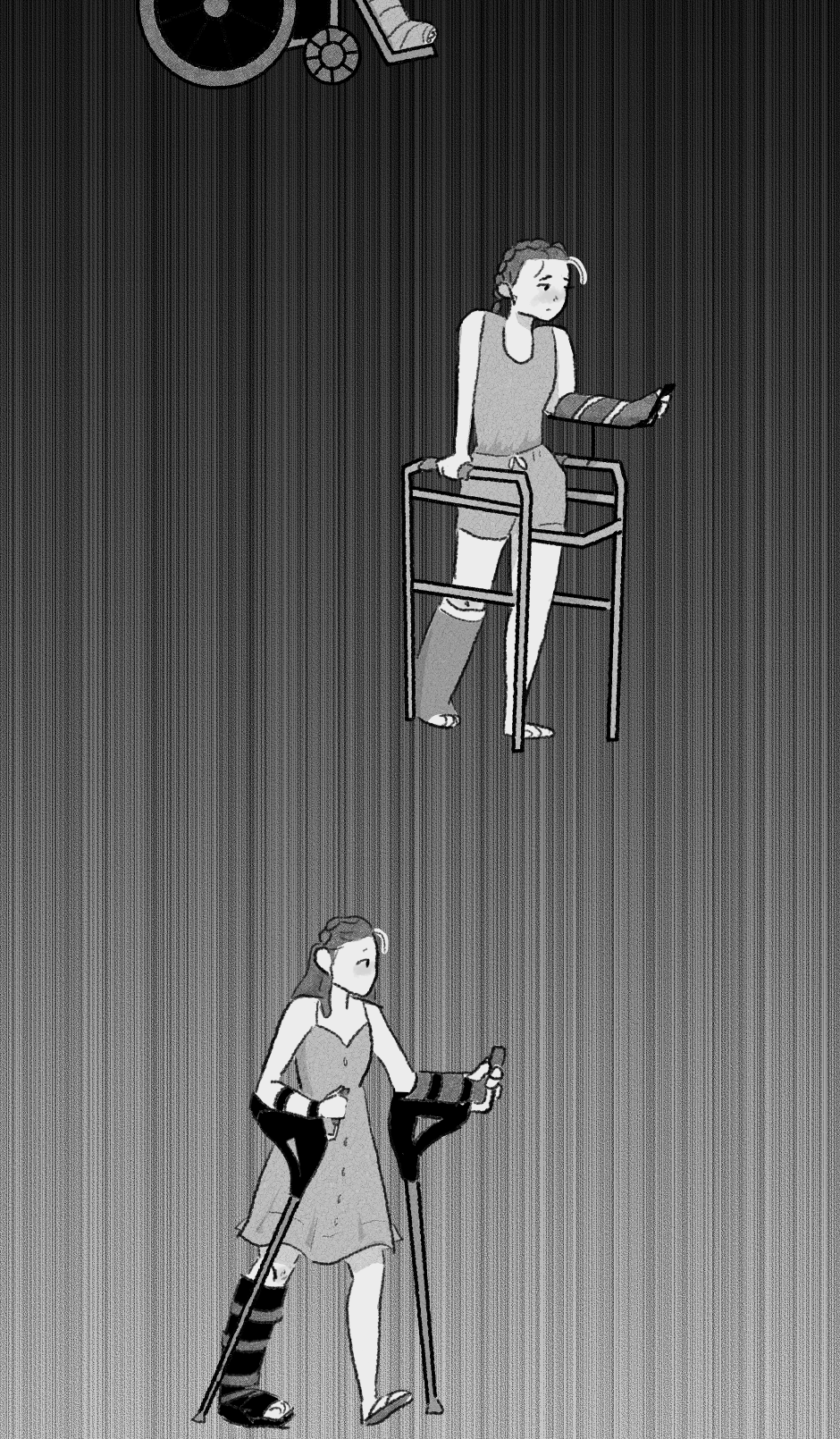 If you've been following my other comic, Cinnamon and Pear, you'll know that I had a pretty serious fall last May. I was on scaffolding 16-20 ft tall, and it broke. I broke my dominant hand, shattered my heel, lost 5 teeth (and the bone they're connected to) and suffered A LOT of trauma. It's been a year since my accident, and it's insane how much I have improved both physically and mentally. I'm proud of my growth and excited for my future.