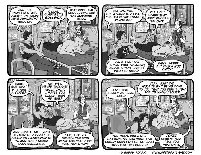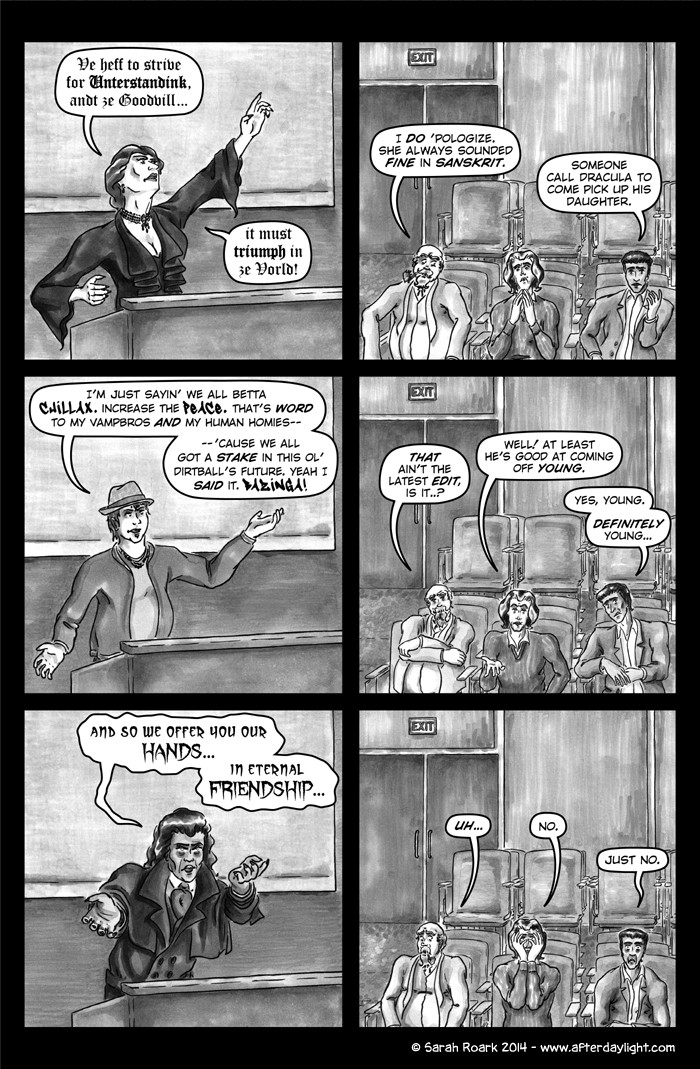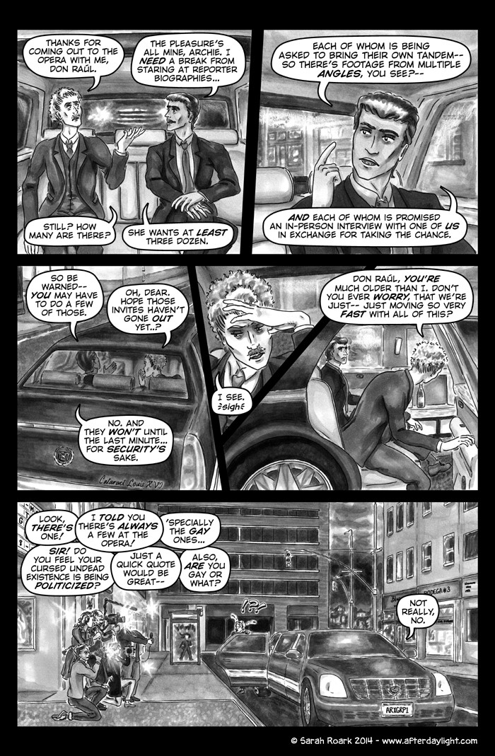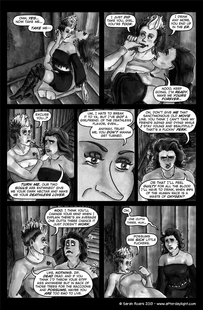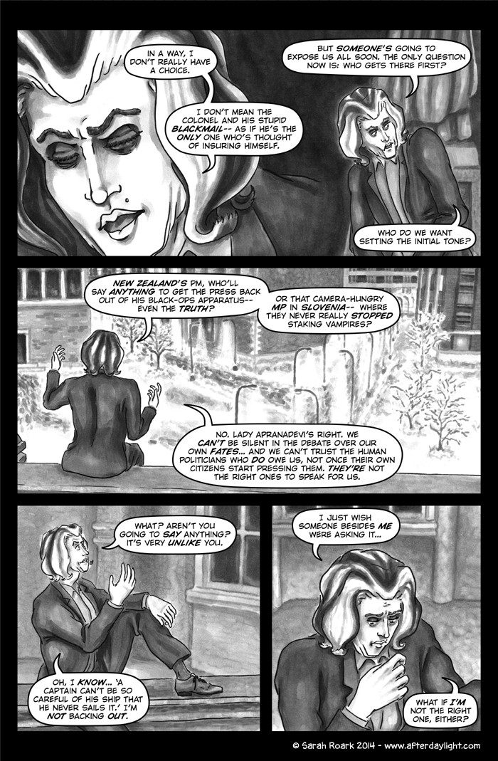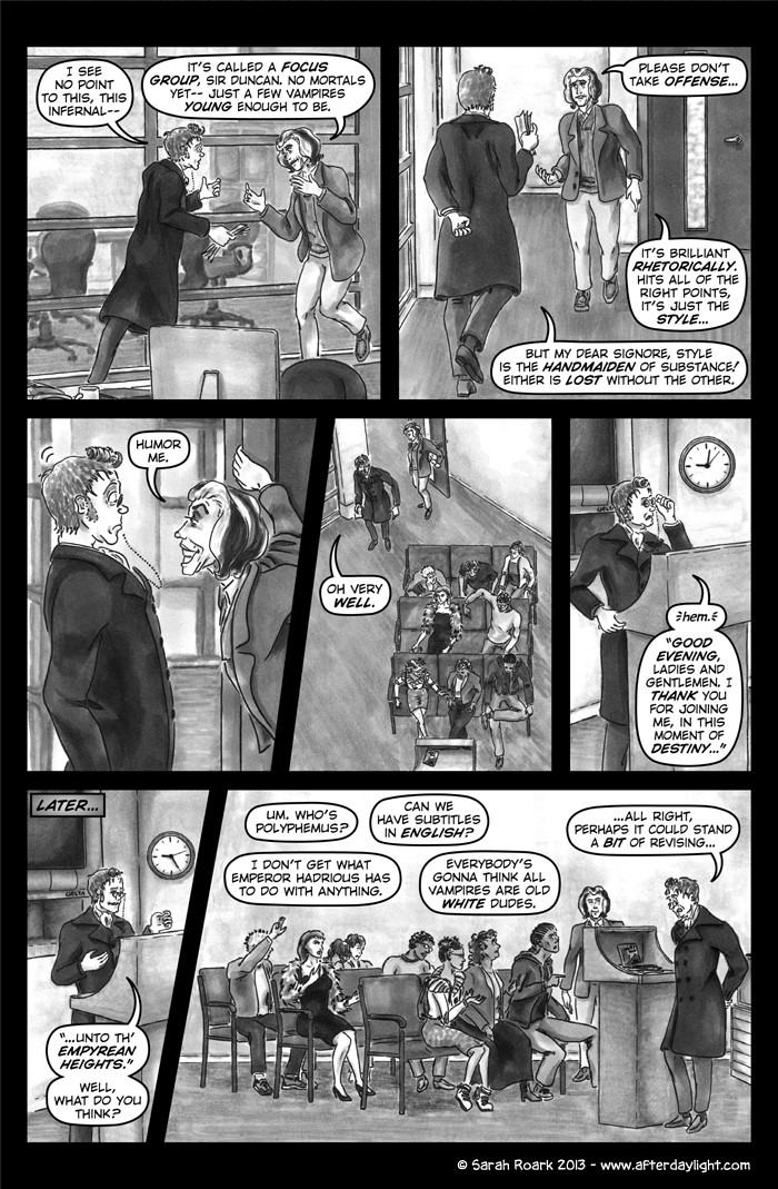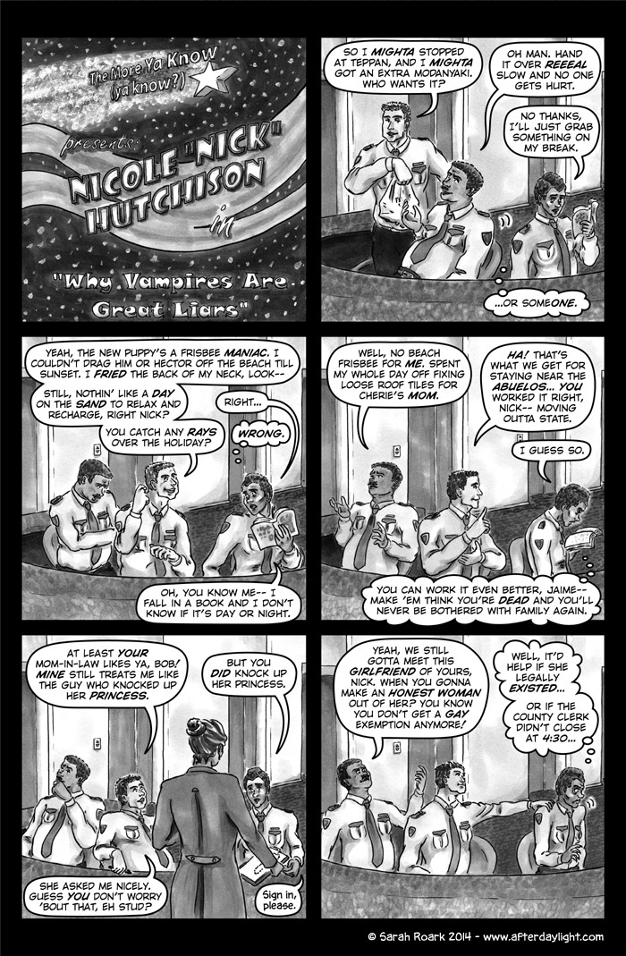What's Daylight? That's what the vampires call it when humans find out about them en masse. (Which gives you some idea of their feelings on the subject.) And what happens when Daylight hits vampires? Well, chaos, politics and snark, for sure...a little romance...a little slice-of-unlife...and God knows what else. Read along and find out!