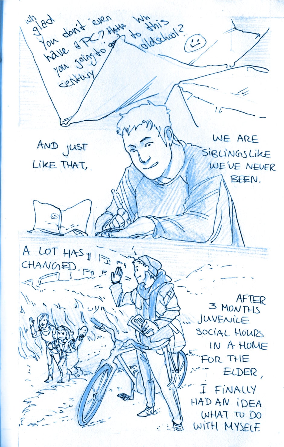Sometimes being good siblings doesn't come natural, but it's never too late to start. Small tale about siblings reconnecting through self-discovery and music.