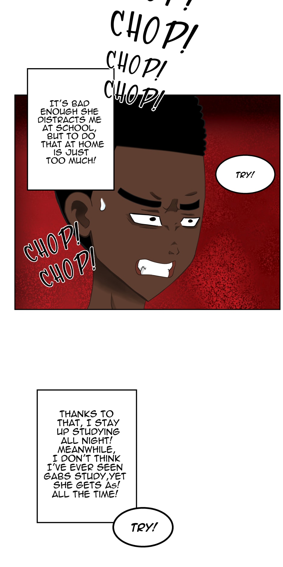 Try goes to Willy Nilly High, and his grades are trash. What’s worst is that his efforts to study are constantly prevented by his eccentric childhood friend and classmate Gabs, who pulls him into her time-wasting hi-jinx. Will Try ever raise his trash grades and overcome the uncanny talent of the Gift of Gabs?