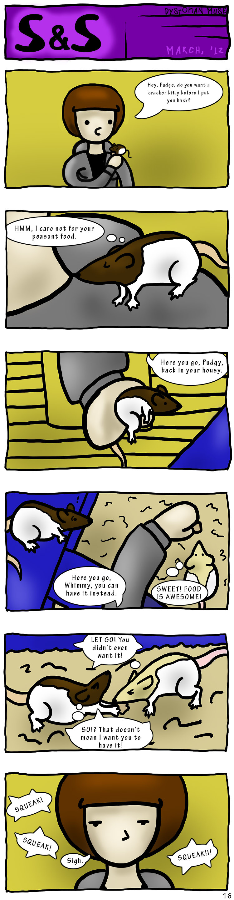 Her name is actually Nimbus, but I started calling her Pudge due to the fact that because she likes to take food so often, she's actually gotten kind of pudgy.