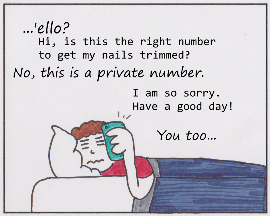 Of all the calls I could have gotten early in the morning. I hope your nails are properly trimmed now, random person.