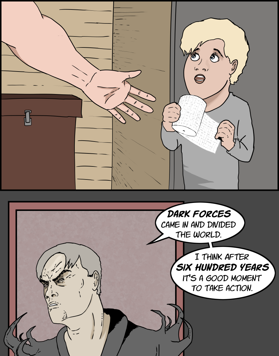 Recently I’ve noticed a TYPO in episode 2 (the word “diving” instead of “dividing”). I’m trying not to be too anal about stuff like this, but it did bug me a lot and I’ve changed it in most of my mirrors (wherever I was able to edit an episode). It led me to an observation that I’m more eager to correct text than to correct art. I guess the sucking of early art is not an “error”, it’s a testament.