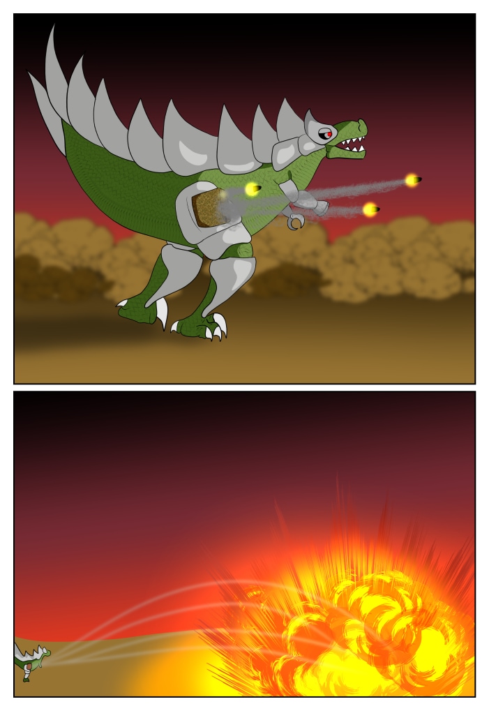 Laser shooting nuclear cyborg dinosaur