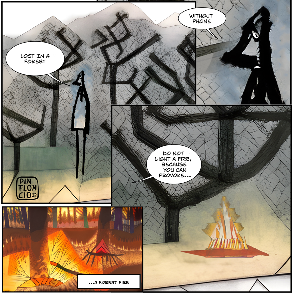 4 panels lost in a forest.