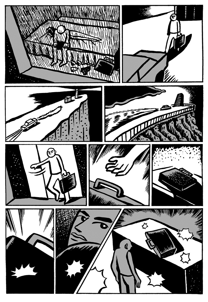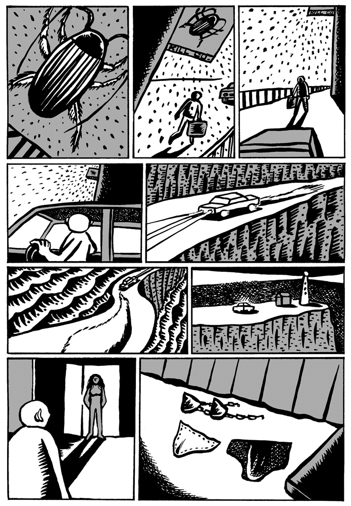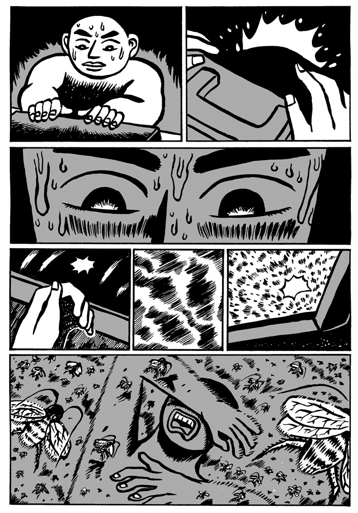 One of the great things about comics is that if the story telling is good, it doesn't matter if the artist and the reader share the same language. The ideas can be conveyed through images. Sometimes this can be a bad thing (as with the recent controversy over the Danish cartoons), but for Malaysian self-publisher Sam Seen's new book China X'perience (2006, Way Publications, Web site) the lack of words doesn't hinder the reading of the stories at all. The book is made up of nineteen short stories (approximately 2-4 pages) that, other than an English title and a short quote, are completely wordless. The lack of words adds to the surreal nature of the stories. In "Bath" a man looks into the drain while taking a shower and gets sucked in. "Fish Man" has a man swimming through the ocean. He eventually grows gills, scales, and a tail before becoming a fish. Other stories are even creepier involving disembodied arms, cockroaches, and murders. It is Seen's art that creates the mood. The protagonist looks to be the same in most of the stories: a bald man with a rarely expressive face. The relatively simple art, but clear story telling, puts the focus on the strange situations the character finds himself encountering. Seen obviously has a creative mind. Each of the stories is unique and has a dreamlike (or nightmare-like) quality. Ignore the title, these stories are universal, and hunt out this book.
