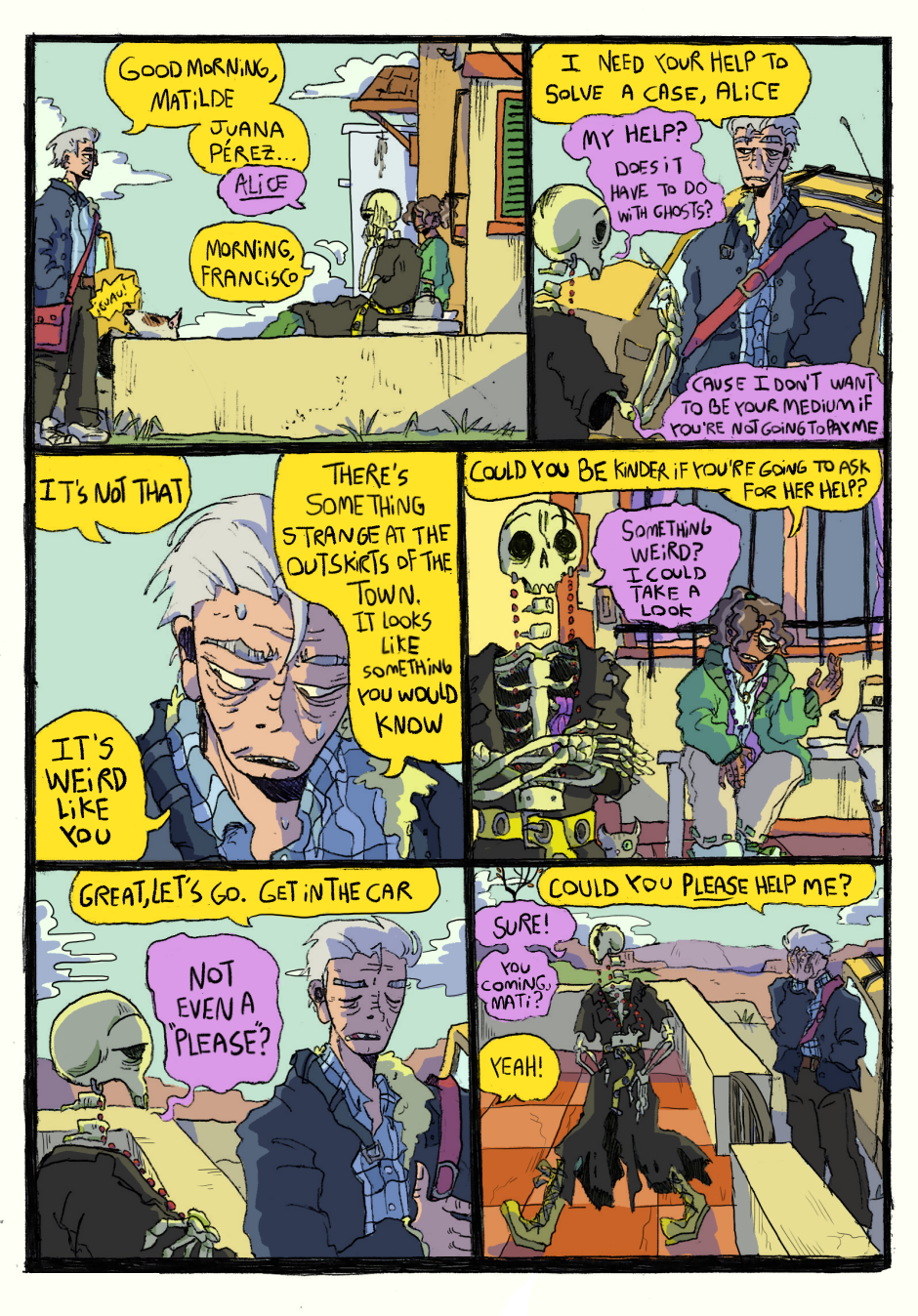 Alice, the living skeleton, interrumps her duties as a psychopomp to celebrate her best friend Mati's birthday. But things aren't going to go as espected when engaging with the dead.
