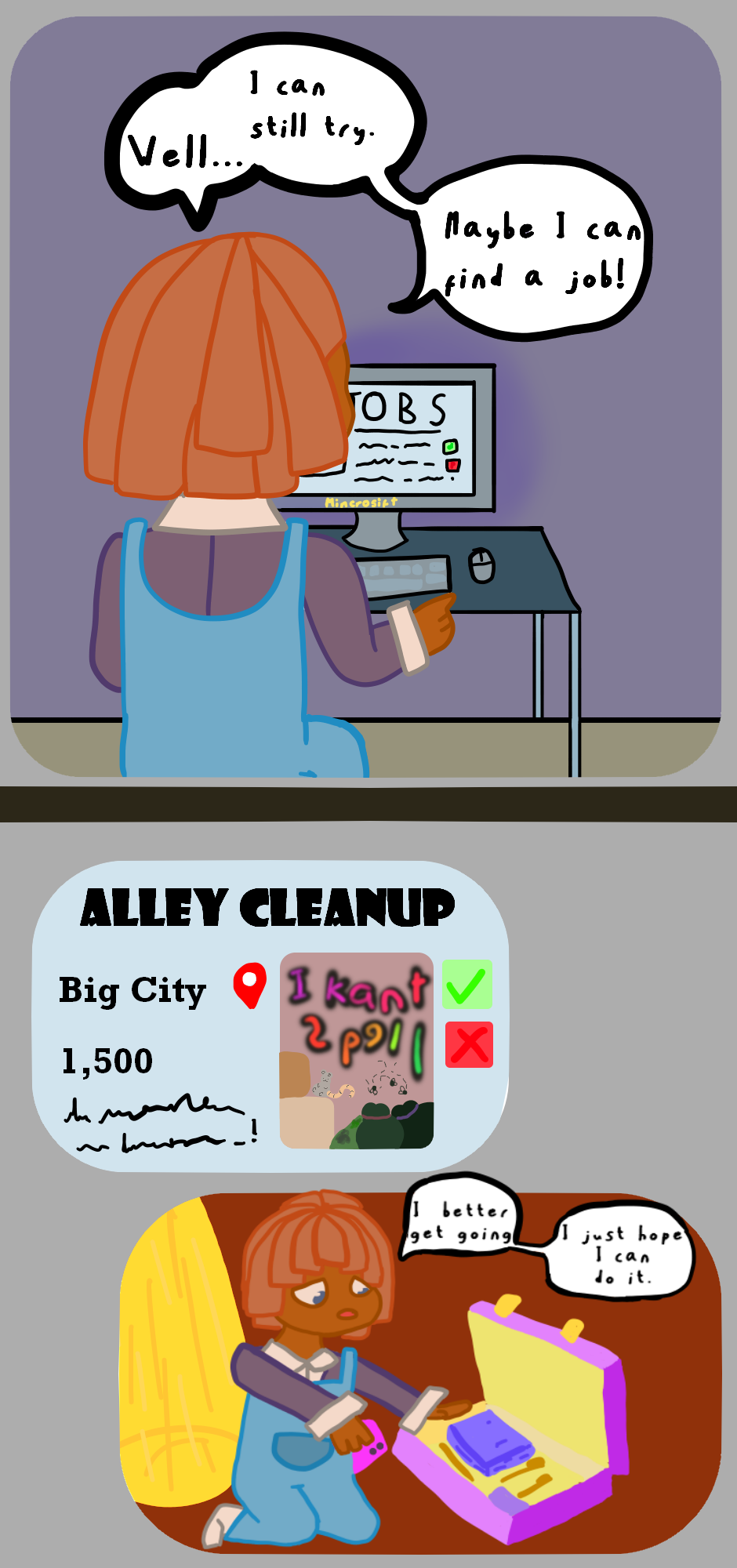 Note: Apologies for the inconsistent styles. I was still trying to find what style's most efficient. The final page of this episode will be the official style for this comic.