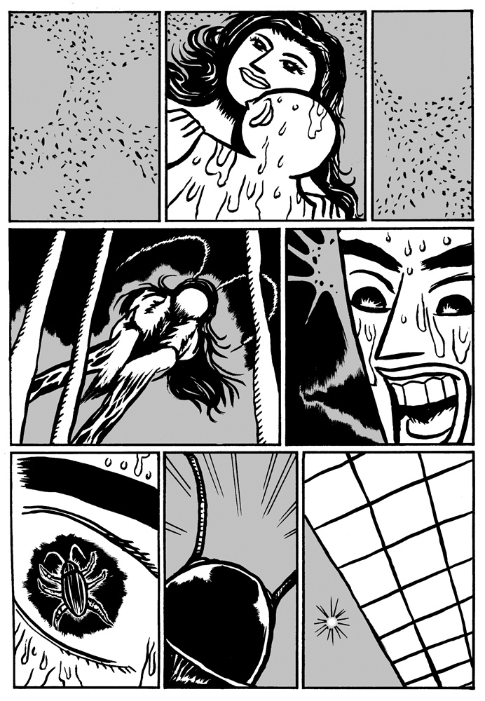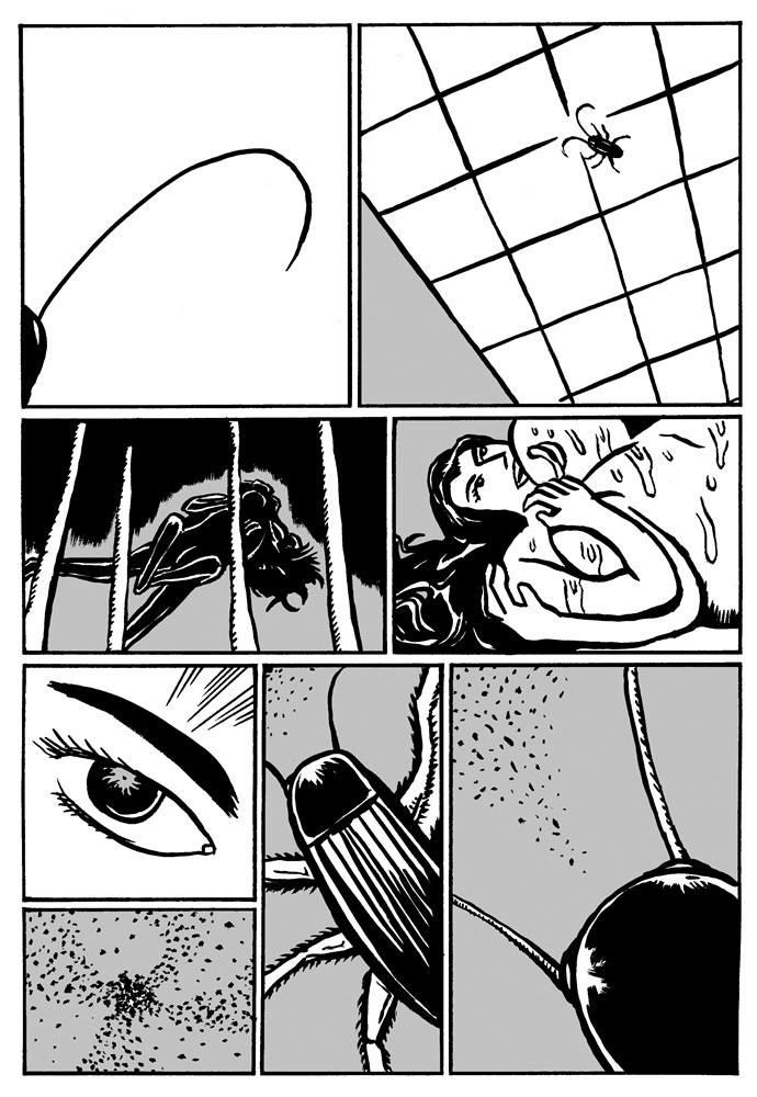 One of the great things about comics is that if the story telling is good, it doesn't matter if the artist and the reader share the same language. The ideas can be conveyed through images. Sometimes this can be a bad thing (as with the recent controversy over the Danish cartoons), but for Malaysian self-publisher Sam Seen's new book China X'perience (2006, Way Publications, Web site) the lack of words doesn't hinder the reading of the stories at all. The book is made up of nineteen short stories (approximately 2-4 pages) that, other than an English title and a short quote, are completely wordless. The lack of words adds to the surreal nature of the stories. In "Bath" a man looks into the drain while taking a shower and gets sucked in. "Fish Man" has a man swimming through the ocean. He eventually grows gills, scales, and a tail before becoming a fish. Other stories are even creepier involving disembodied arms, cockroaches, and murders. It is Seen's art that creates the mood. The protagonist looks to be the same in most of the stories: a bald man with a rarely expressive face. The relatively simple art, but clear story telling, puts the focus on the strange situations the character finds himself encountering. Seen obviously has a creative mind. Each of the stories is unique and has a dreamlike (or nightmare-like) quality. Ignore the title, these stories are universal, and hunt out this book.