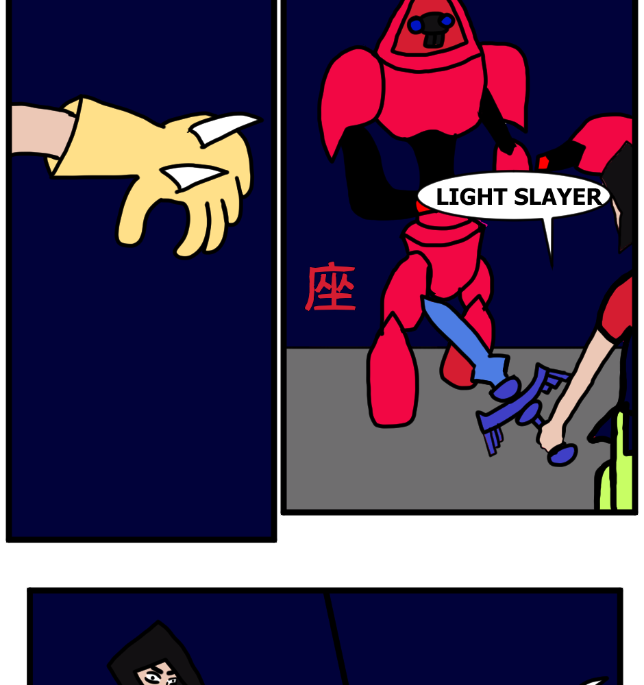 Jusai faces a Robotic Namek with his Sword Mode
