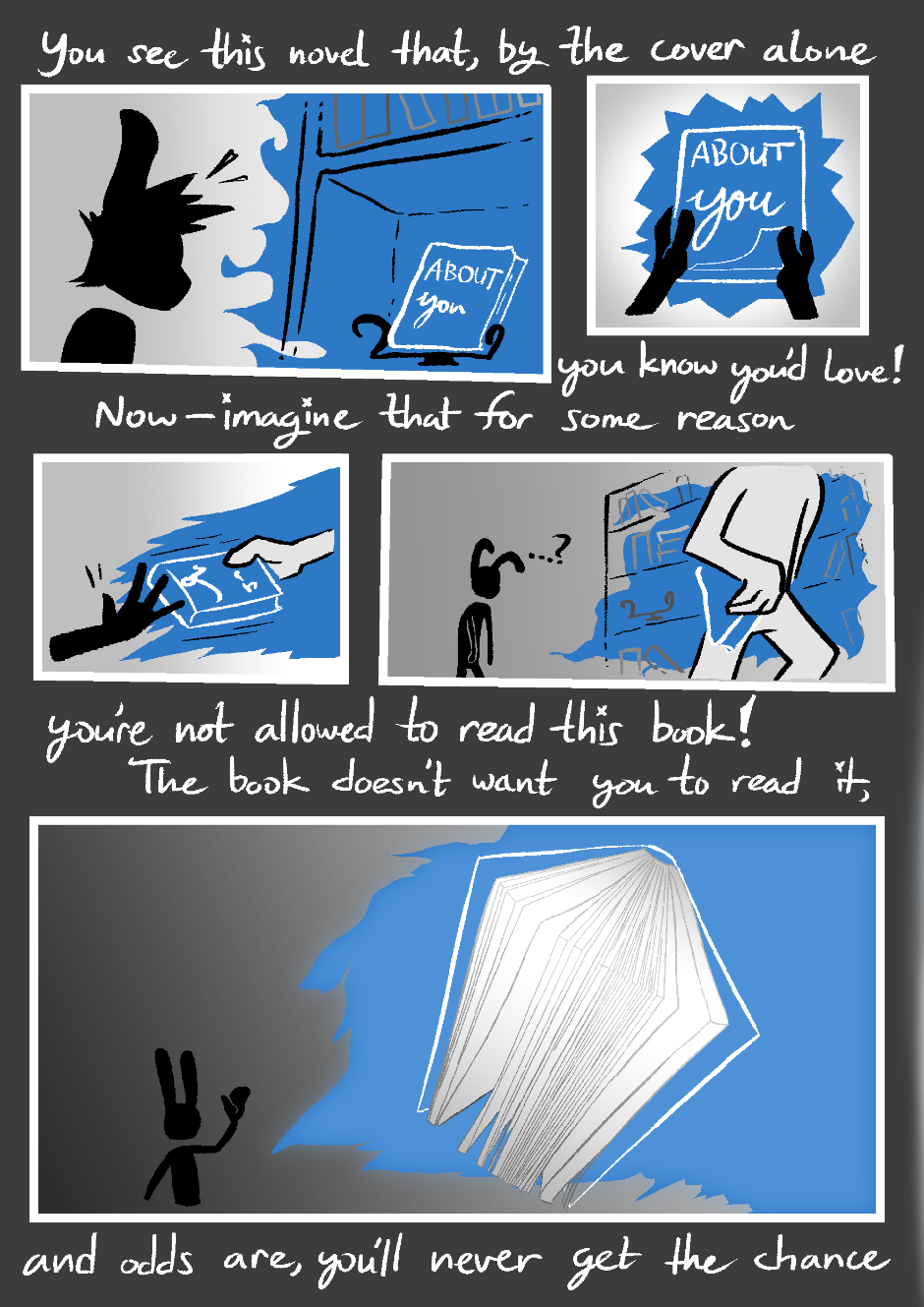 Herba Collier is cleaning up shop. He has an awkward interaction, then begins to reminisce on his childhood, and about 'book people'... let's see what happens