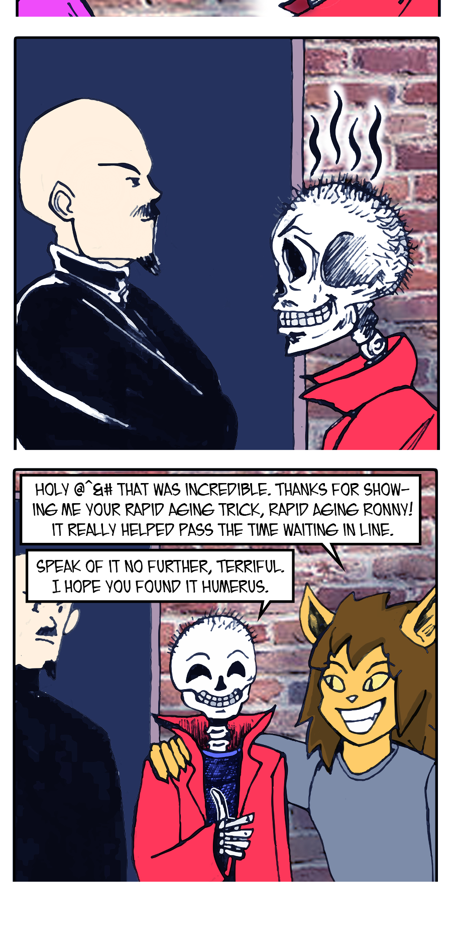 In-between the attacks from dastardly villains and world ending threats, Terriful goes about his life! Bite Sized Terriful follows the titular character as he goes on weekly adventures around his world fighting villains, waiting for his game to update, or even standing in line at the club.