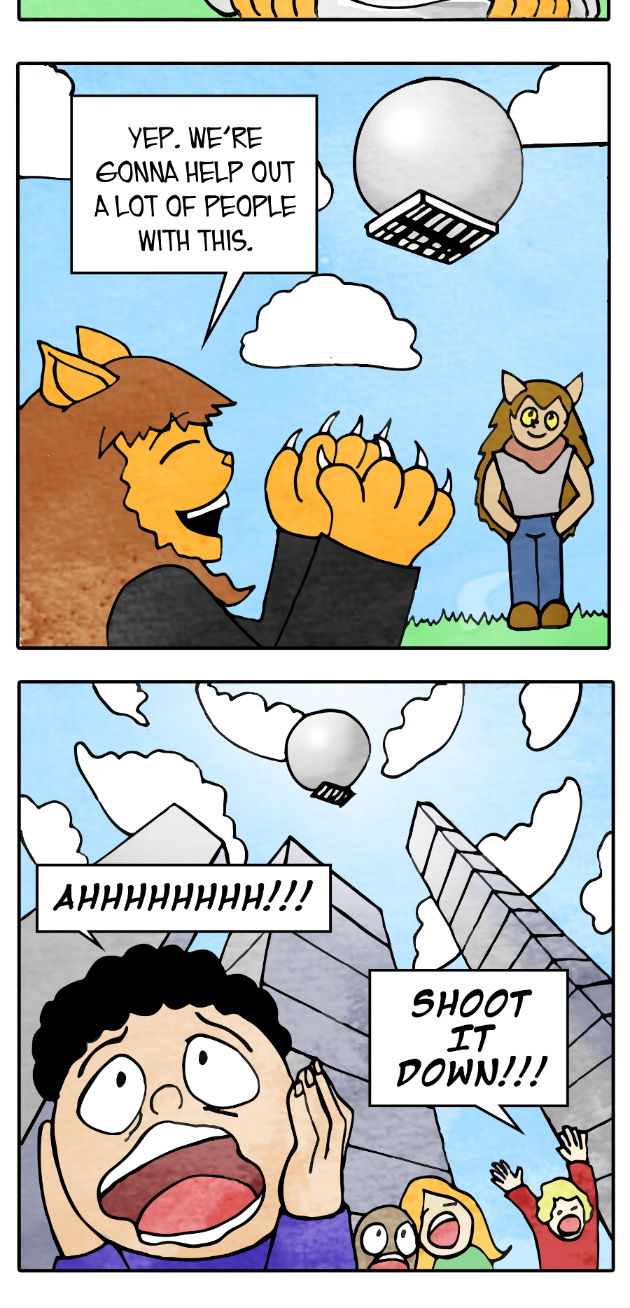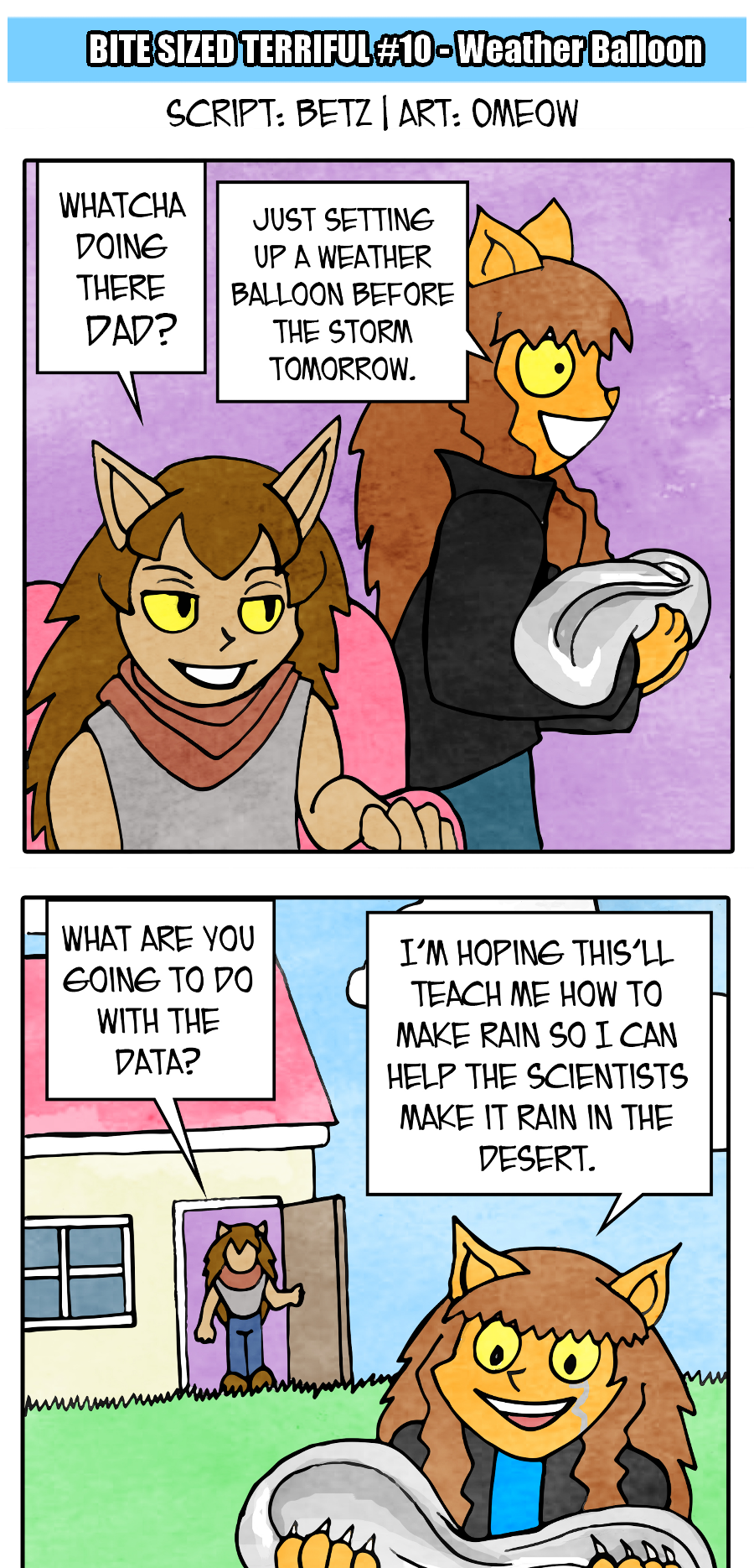 In-between the attacks from dastardly villains and world ending threats, Terriful goes about his life! Bite Sized Terriful follows the titular character as he goes on weekly adventures around his world fighting villains, waiting for his game to update, or even standing in line at the club.