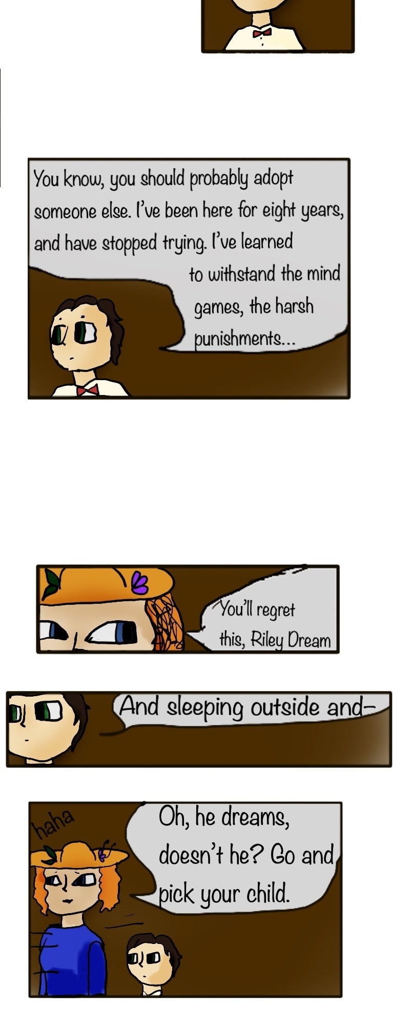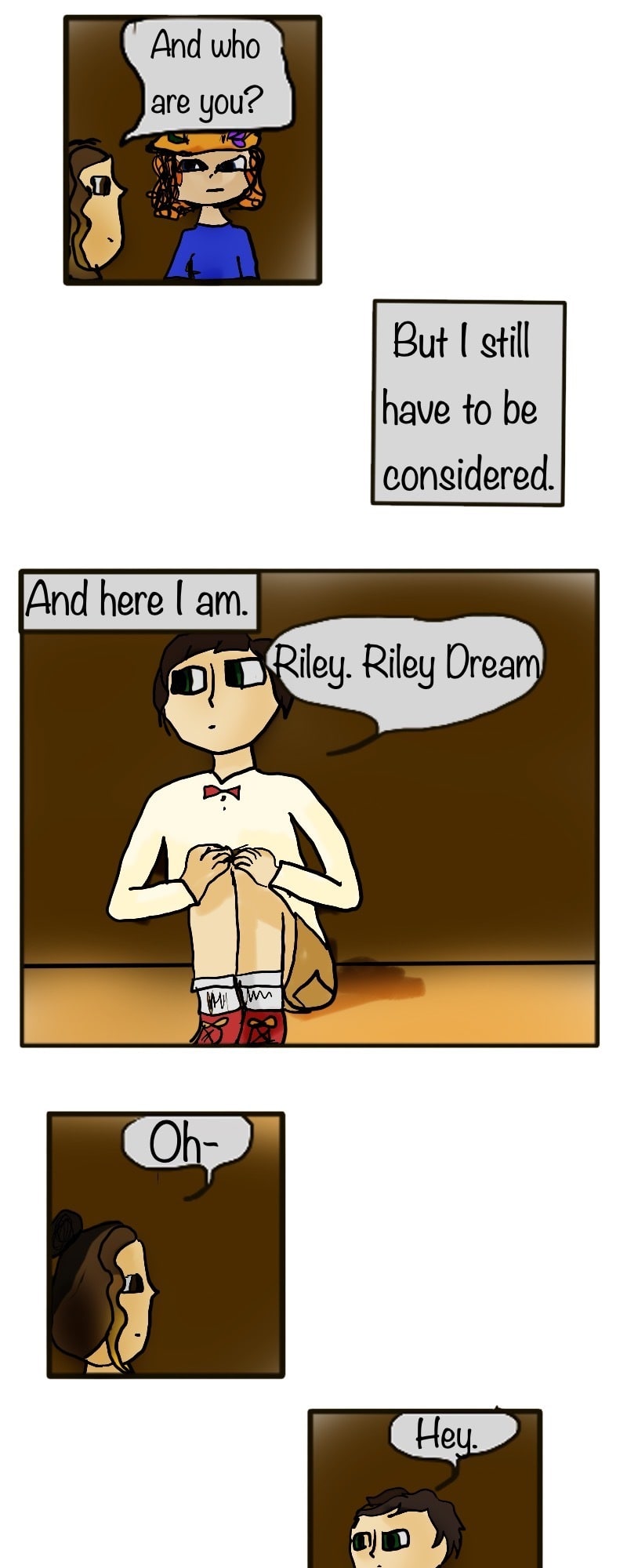 Ahh, we finally meet the main character! Also, I apologize for Riley's angsty repetitive ramblings. It pretty much stops after this page.